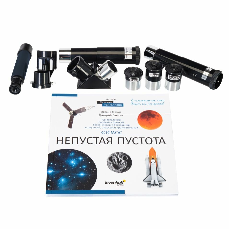 Телескоп Levenhuk Discovery Spark 607 AZ с книгой – это все, что нужно начинающему любителю астрономии. Прибор прост в освоении, укомплектован всем необходимым, отлично подходит для изучения Луны и наземных ландшафтов. С его помощью также можно увидеть в общих чертах некоторые планеты и наиболее яркие дипскай-объекты. В комплекте есть красочная познавательная книга «Космос. Непустая пустота» – это идеальное приложение к телескопам-рефракторам, так как она посвящена в первую очередь ближнему космосу, по которому работают приборы этой оптической схемы.