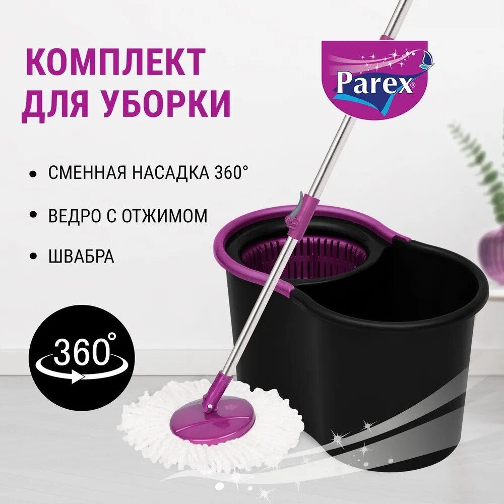 **Комплект для уборки PAREX** - отличное решение для уборки дома. Комплект включает в себя ведро с отжимом, швабру, 1 сменную насадку/моп.