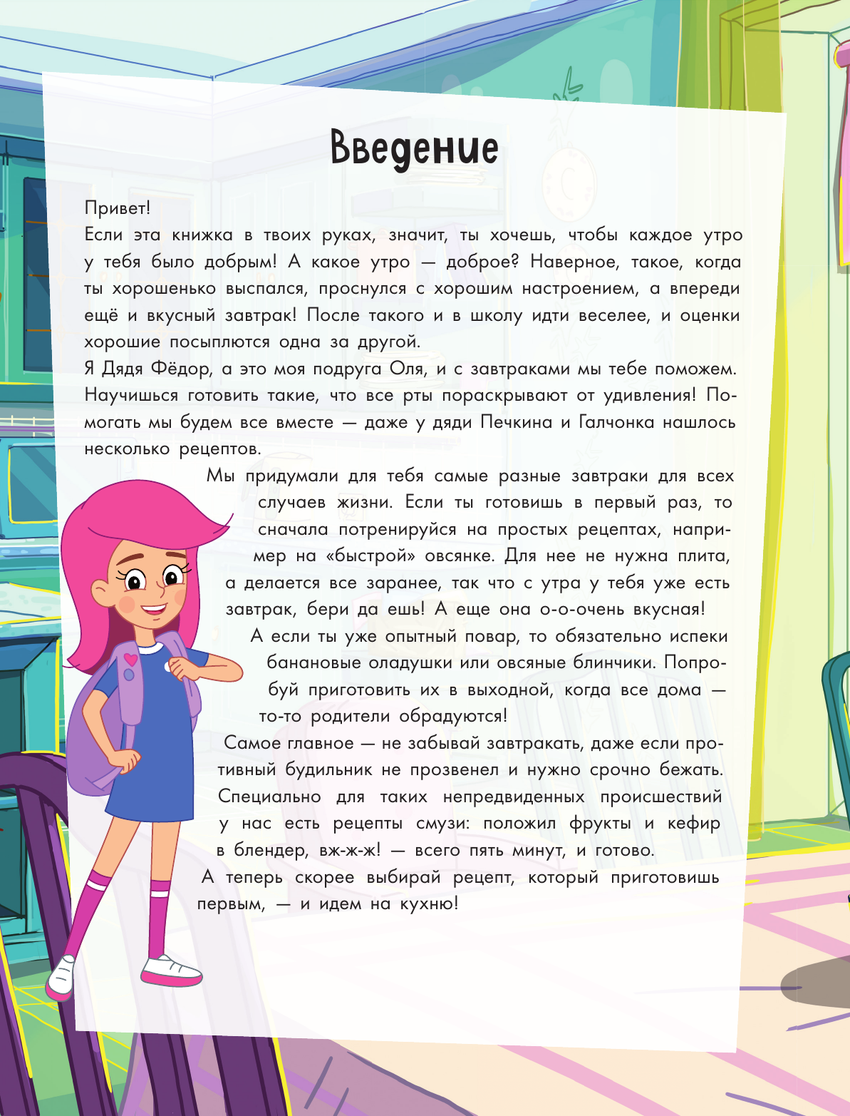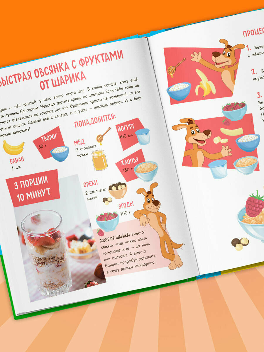 Вместе с любимыми героями мультсериала «Простоквашино» ребята научатся готовить яркие вкусные завтраки: от самых простых, вроде «ленивой» ночной овсянки, до необычных, например печеных яблок с орехами. От старших понадобится только пару раз помочь, чтобы ребенок подружился с духовкой.