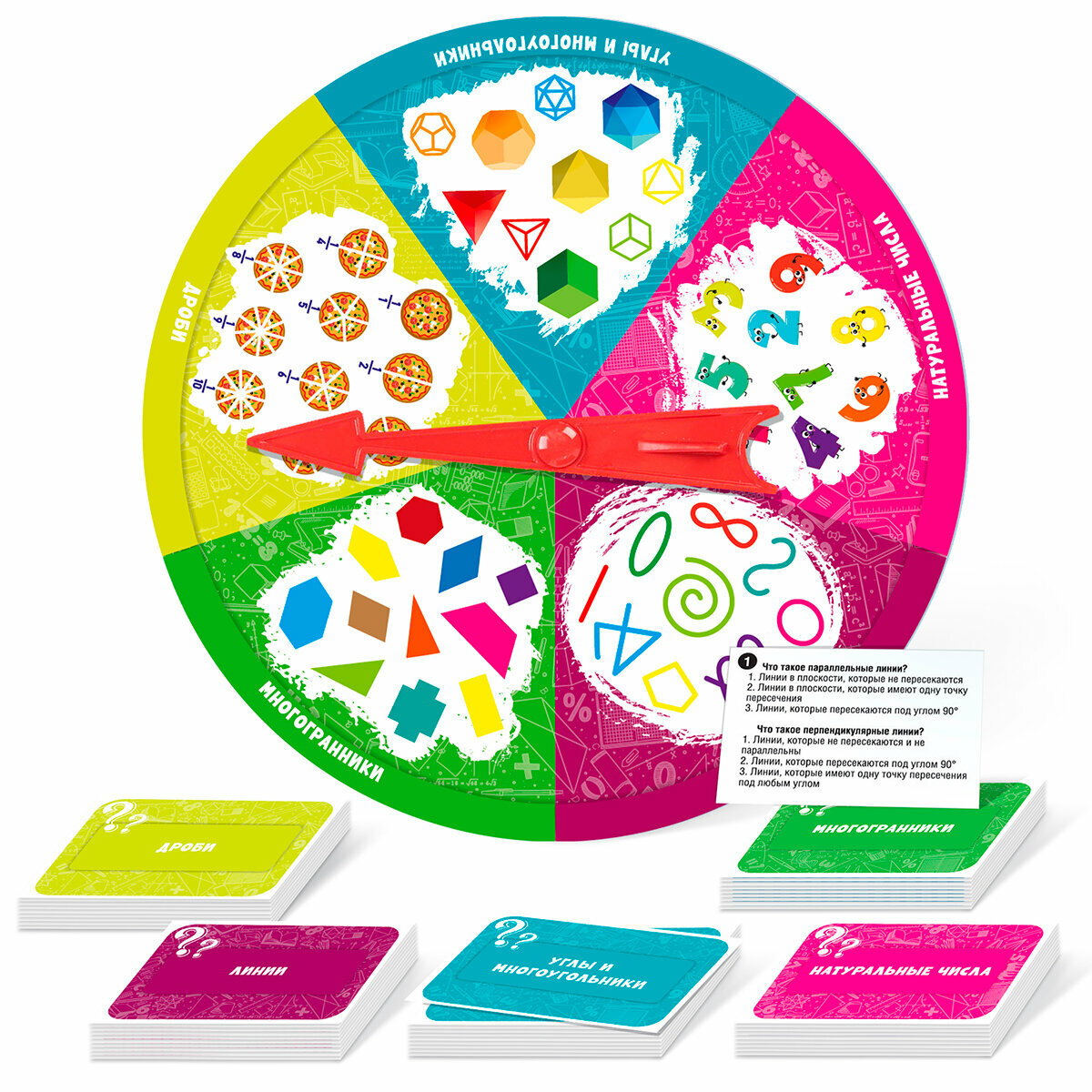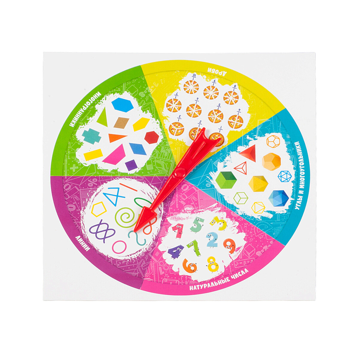 Игра настольная Викторина "Алгебра.Геометрия". Состав игры: картонное игровое поле со стрелкой (20х20 см) – 1 шт;