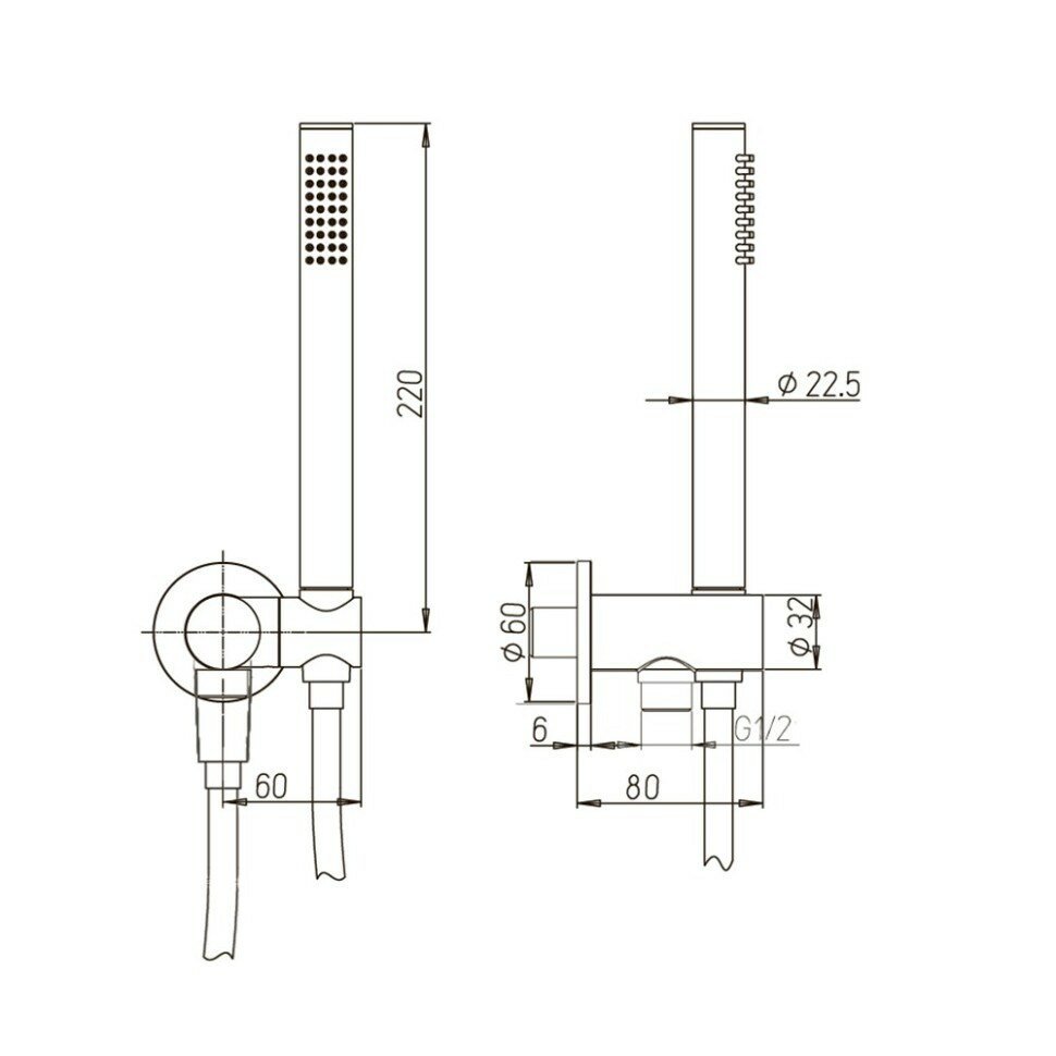 - Размер ручного душа (ШхВ): 23х220 мм.