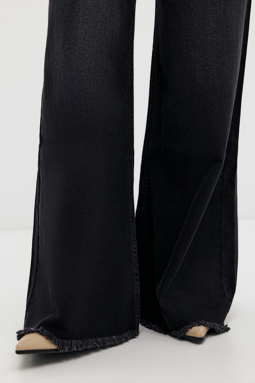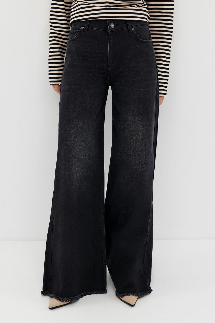 Джинсы посадки «wide leg» сшиты из хлопкового денима. Эти джинсы обеспечивают непревзойденный комфорт в носке благодаря 100% хлопку, который гарантирует гигроскопичность, натуральность и экологичность. Средняя по высоте посадка и свободный крой делают эти джинсы подходящими для женщин с разными типами фигуры. Черные джинсы с легкими потертостями позволяют носить их в аутфитах в стиле smart или casual. Фирменная фурнитура добавляет стильный акцент. Эти джинсы подходят для любого возраста, и особенно для высоких женщин. Рекомендуется бережная стирка при 30°C, чтобы сохранить их внешний вид и качество на долгие годы. Отличный вариант для создания стильных и удобных образов на каждый день.