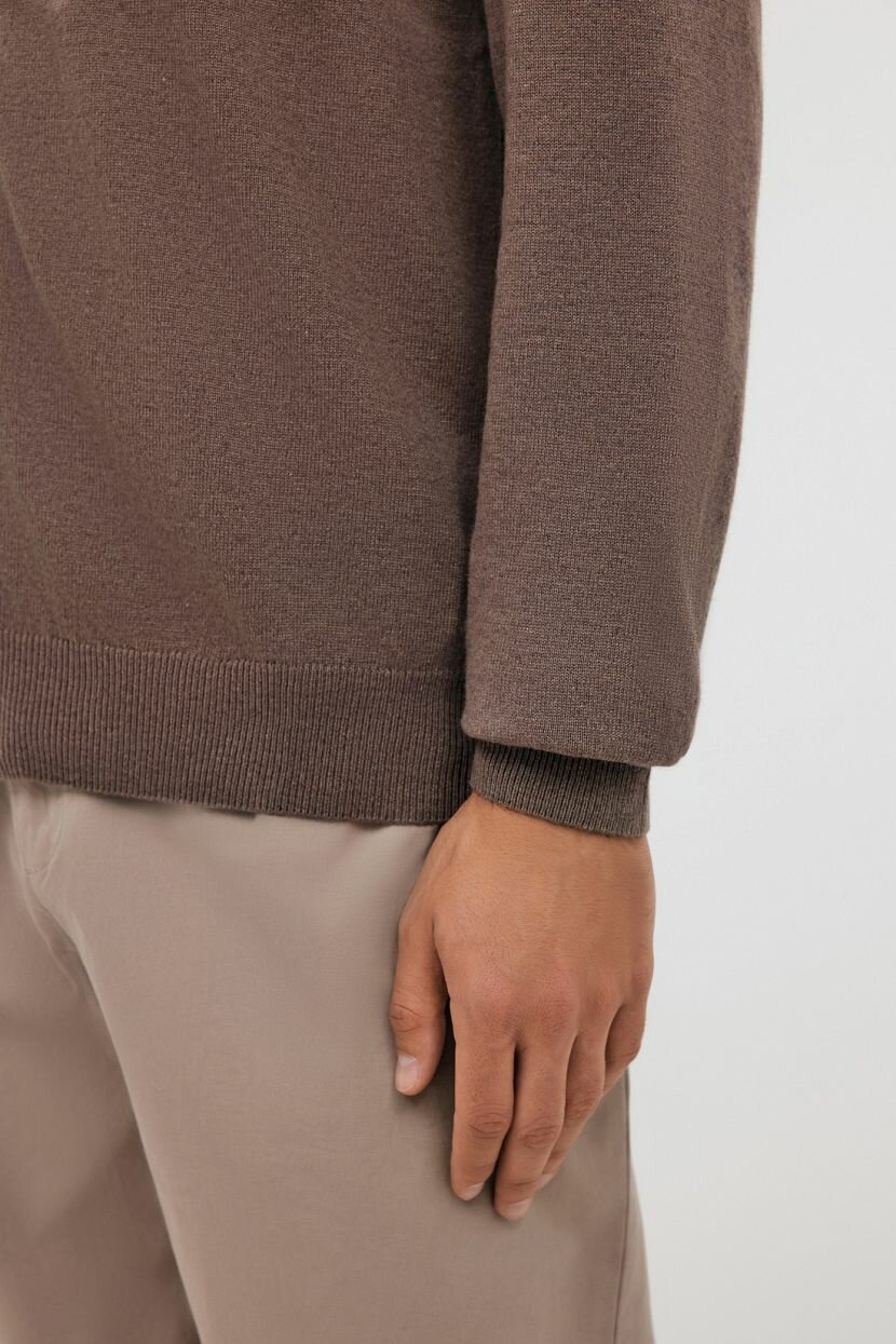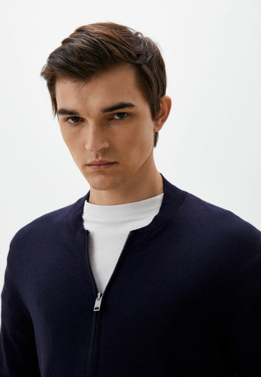 Мужской кардиган с круглым вырезом горловины - элегантная повседневная база. Она дарит комфорт и при этом не утяжеляет аутфит. Абсолютная свобода движений станет спутницей образов на каждый день или для офиса. Приталенный силуэт красиво садится по фигуре. Линия плеча приспущена, что создает эффект объема. Застегивается на молнию. Кофта с длинным рукавом связана гладким плетением. Манжеты и низ - классической трикотажной резинкой, рибом. Такое решение обеспечивает оптимальное прилегание к телу. Изделие выполнено из премиальной шерстяной пряжи. Шерсть согревает и отличается высокой воздухопроницаемостью. Вискоза и кашемир в составе придают непревзойденную мягкость и гладкость. Небольшое добавление синтетических волокон повышает устойчивость к деформации и пластичность трикотажа.