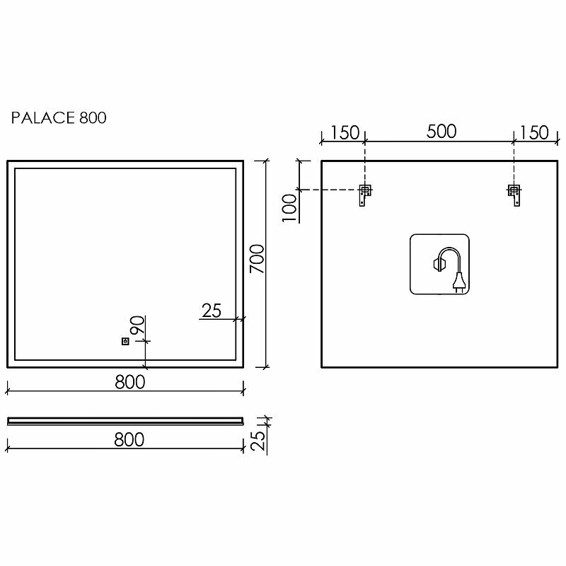 Зеркало Sancos Palace 80 с подсветкой с сенсорным выключателем PA800