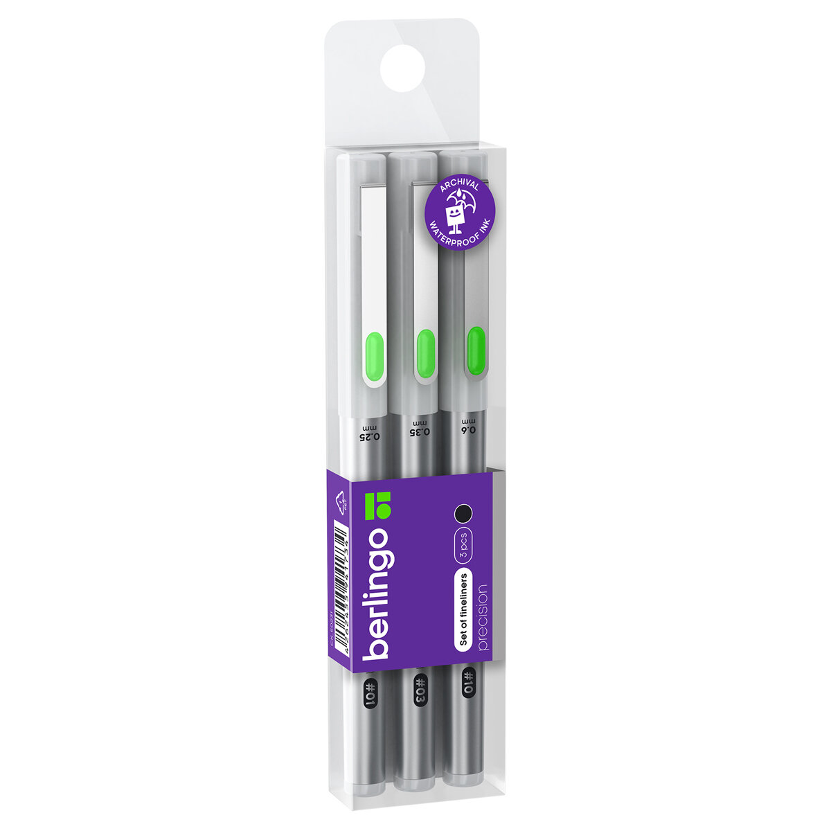 Набор линеров пигментных Berlingo "Precision" черные 3 шт. 025/035/06 мм европодвес (CK_50231)