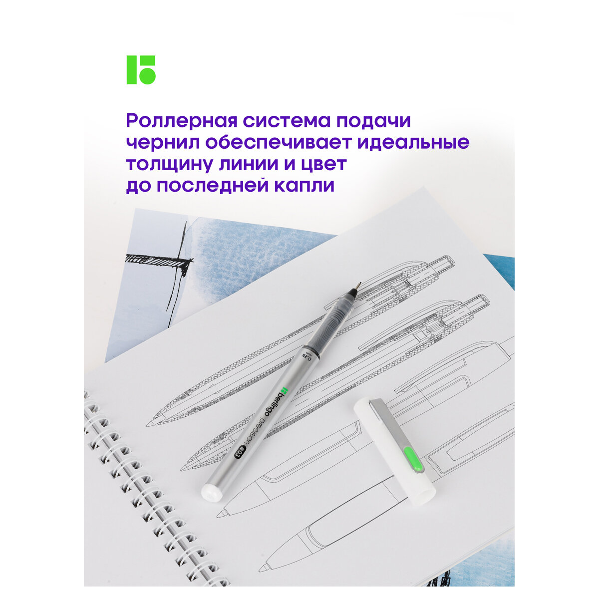 Уникальным свойством линеров серии Precision является «роллерная» подача чернил. Сложная система сообщающихся полостей с микронными проемами для подачи воздуха внутрь ручки гарантирует идеальную толщину линии письма. А хранение чернил в жидком виде обеспечивают стабильность цвета от начала работы до последней капли. Профессиональный пишущий узел не только обеспечивает толщину линии с шагом 0,05 мм, но и позволяет ручке продолжить писать, даже если забыть закрыть ее колпачком на срок до 72 часов. Удобное окошко на обороте ручке позволит контролировать остаток чернил и заранее подготовить новый инструмент. А металлический клип – надежно закрепить ручку на скетчбуке, планшете или кармане.