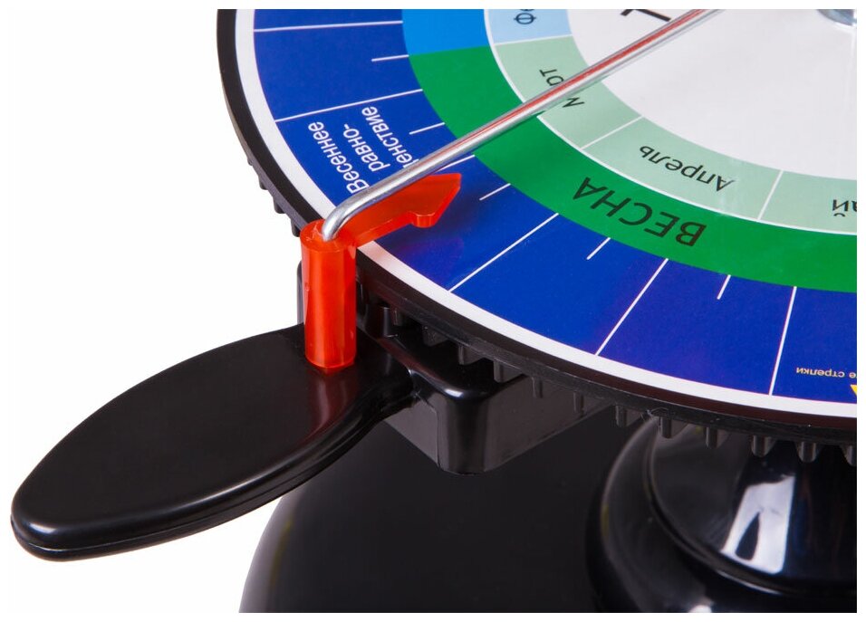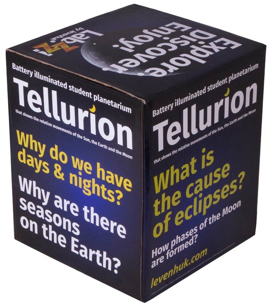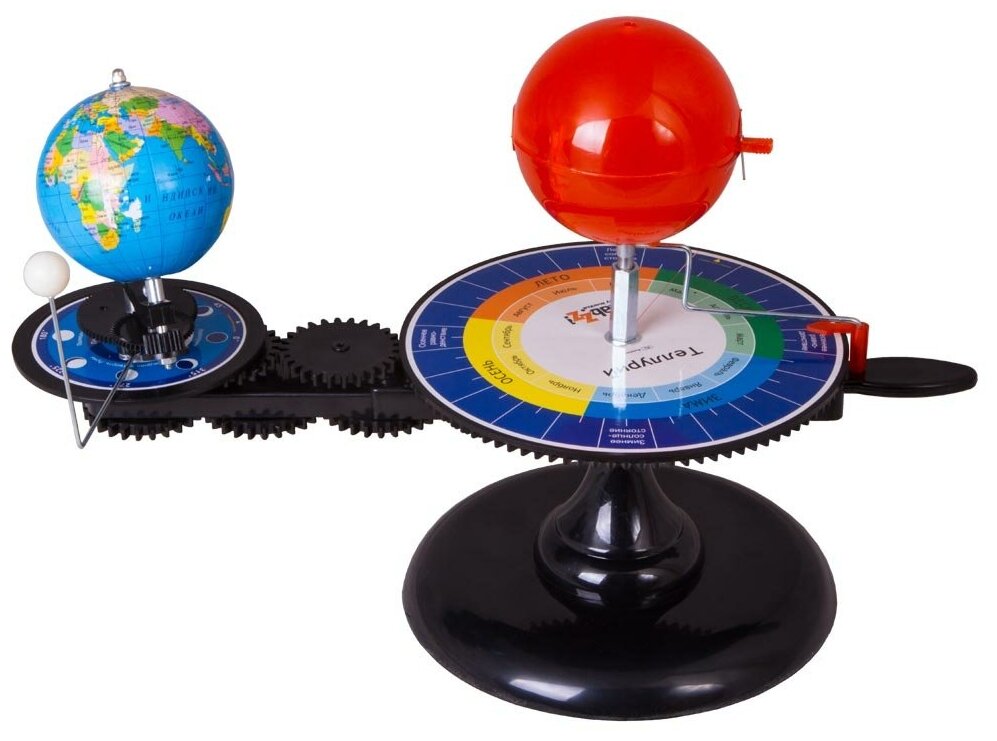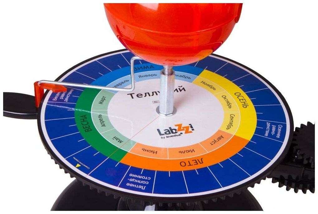 Теллурий Levenhuk LabZZ – это настольная механическая модель для демонстрации движения Земли и Луны вокруг Солнца. С его помощью ребенок узнает, почему меняются времена года, растет и убывает Луна, а год делится на двенадцать месяцев. Теллурий станет прекрасным наглядным пособием для уроков астрономии и географии в школе. Теллурий крепится к подставке с помощью винта. Детали прибора соединены между собой шестеренками. Модели Земли и Луны приводятся в движение при помощи небольшой ручки. В центре вращающейся конструкции находится модель Солнца, внутри которой размещен блок подсветки. Кнопка включения лампочки расположена под основанием модели. Глобус Земли движется вокруг Солнца против часовой стрелки. С помощью теллурия можно наблюдать смену времен года. Пока Земля совершает вокруг Солнца один полный оборот, Луна успевает облететь Землю 12 раз – это соответствует двенадцати месяцам в году. Все основные элементы прибора изготовлены из прочного и безопасного пластика. Диаметр модели Солнца составляет 100 мм, Земли – 85 мм, Луны – 18 мм. Обращаем ваше внимание – теллурий содержит мелкие детали! Не допускайте, чтобы с ним играли маленькие дети без присмотра взрослых. Особенности: Механическая модель движения Земли и Луны вокруг Солнца Эффективное наглядное пособие Прибор приводится в движение специальной ручкой Внутри модели Солнца находится яркая лампочка Комплектация: Теллурий Levenhuk LabZZ Подставка с винтом Батарейки Инструкция по эксплуатации и гарантийный талон Технические характеристики Материал пластик Диаметр модели Солнца, мм 100 Диаметр модели Земли, мм 85 Диаметр модели Луны, мм 18