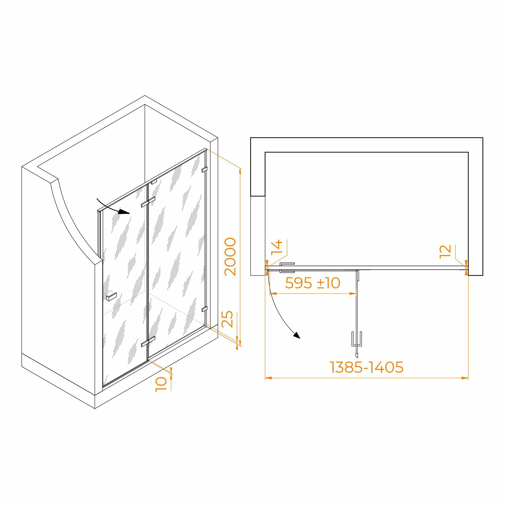 - Размеры с диапазоном регулировок (ШхВ): 1385-1405х2000 мм.