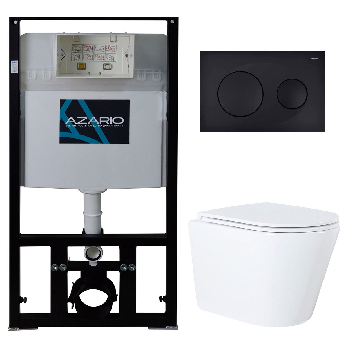 Подвесной унитаз с инсталляцией и кнопкой Azario Teramo AZ-8010-1000+AZ-8200-0013+AZ-0053 безободковый, с крышкой микролифт, белый, кнопка черная