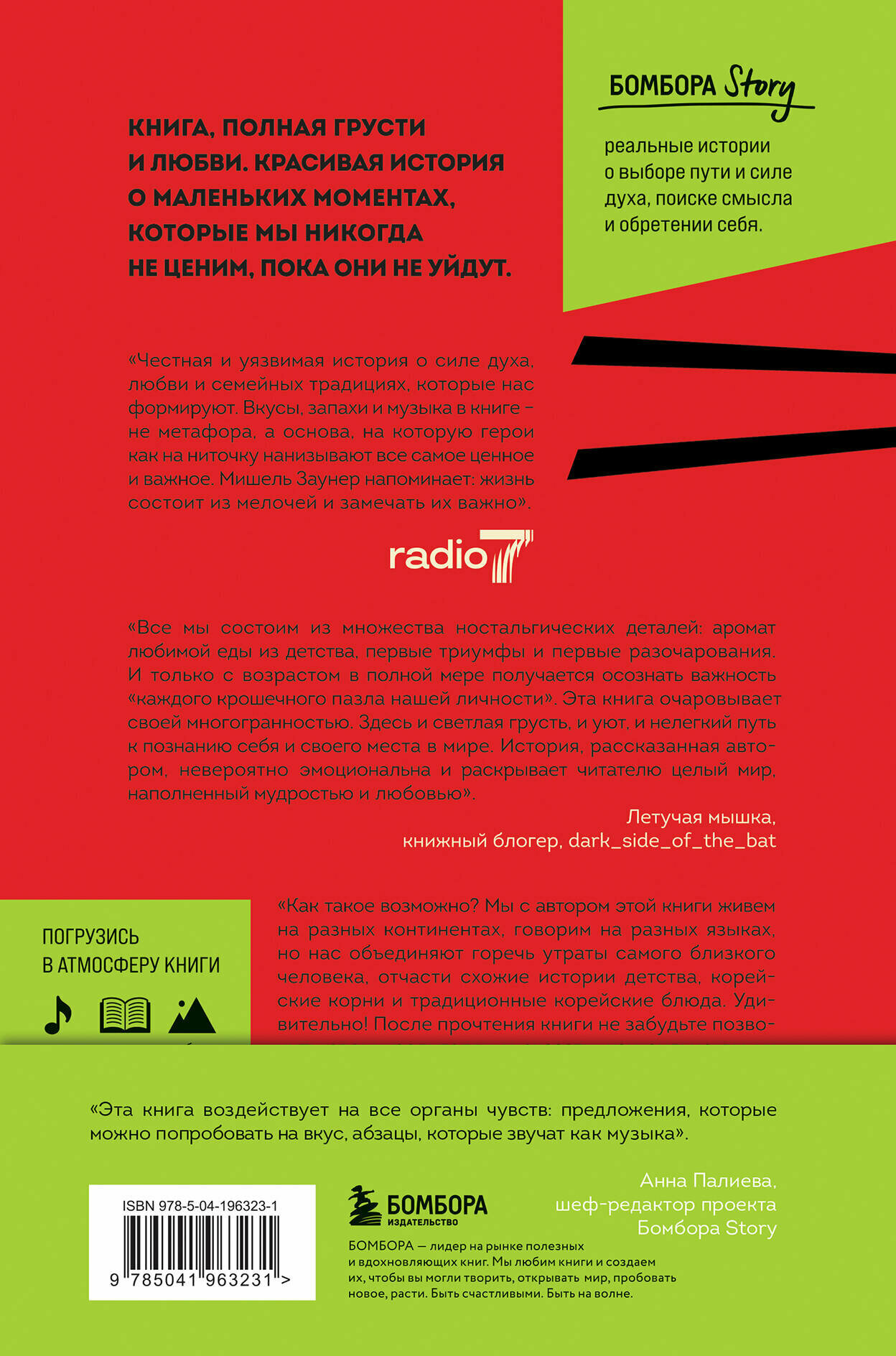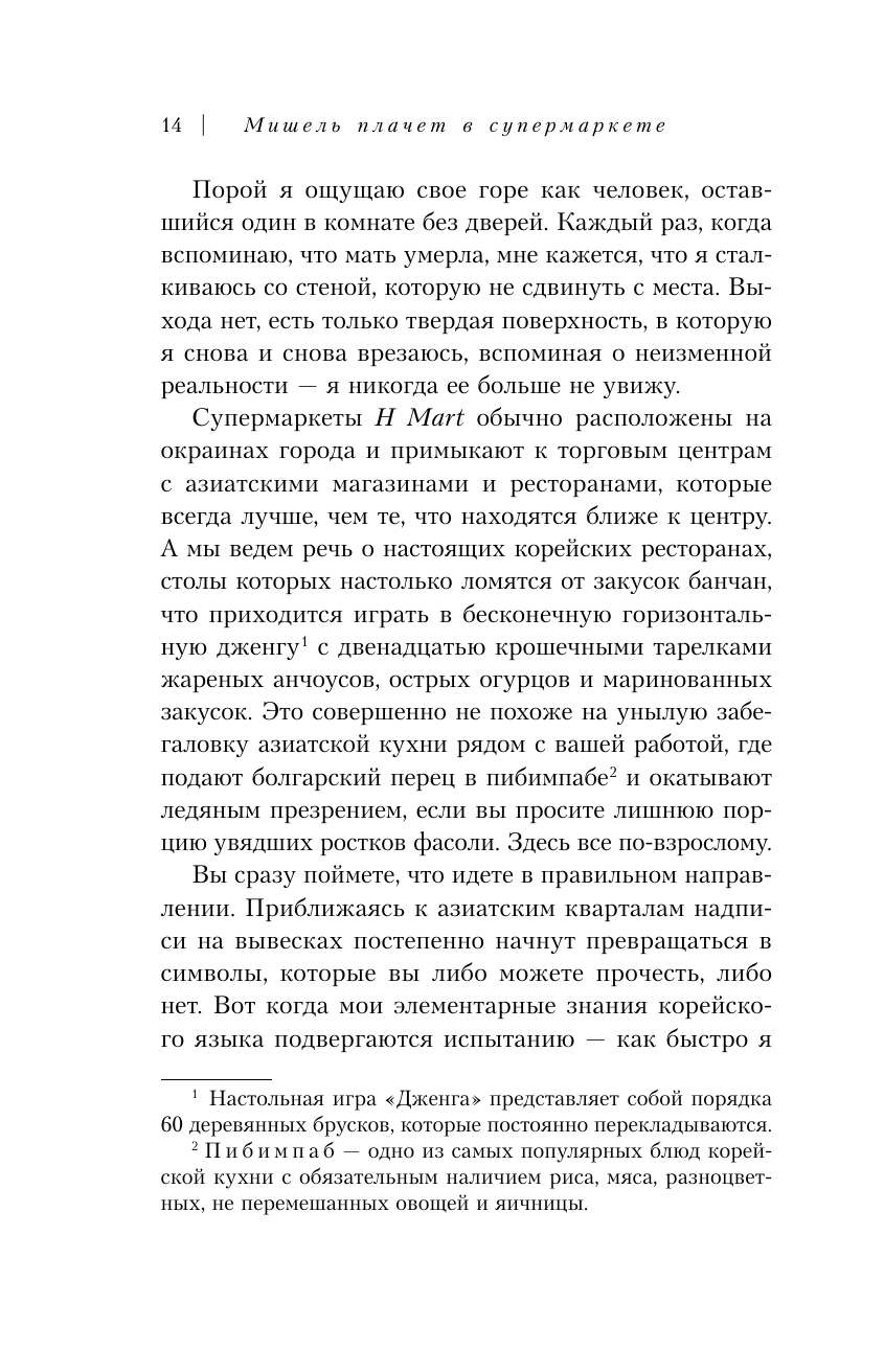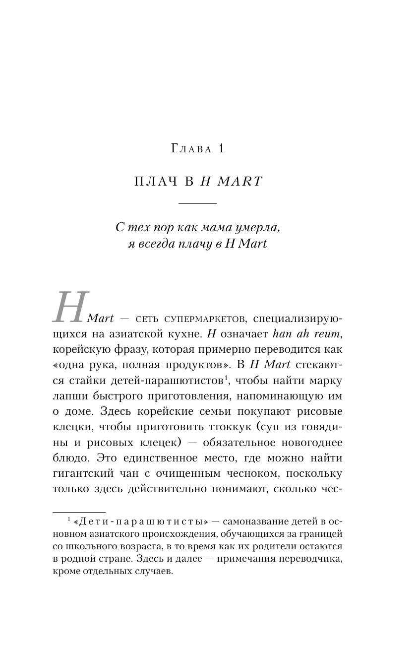 Когда Мишель исполнилось двадцать пять, ее мамы не стало. И больше всего на свете ей захотелось снова стать маленькой, чтобы мама поправила ей челку, разгладила морщинку меж бровей, сделала замечание осанке… Пытаясь справиться с горем, Мишель учится готовить любимые блюда из детства. Суп твенджан тиге и каша джатчжук, ферментированная капуста кимчи и маринованные ребрышки гальби — эти вкусы помогают Мишель примириться с утратой, вновь ощутить мамину любовь и найти себя.