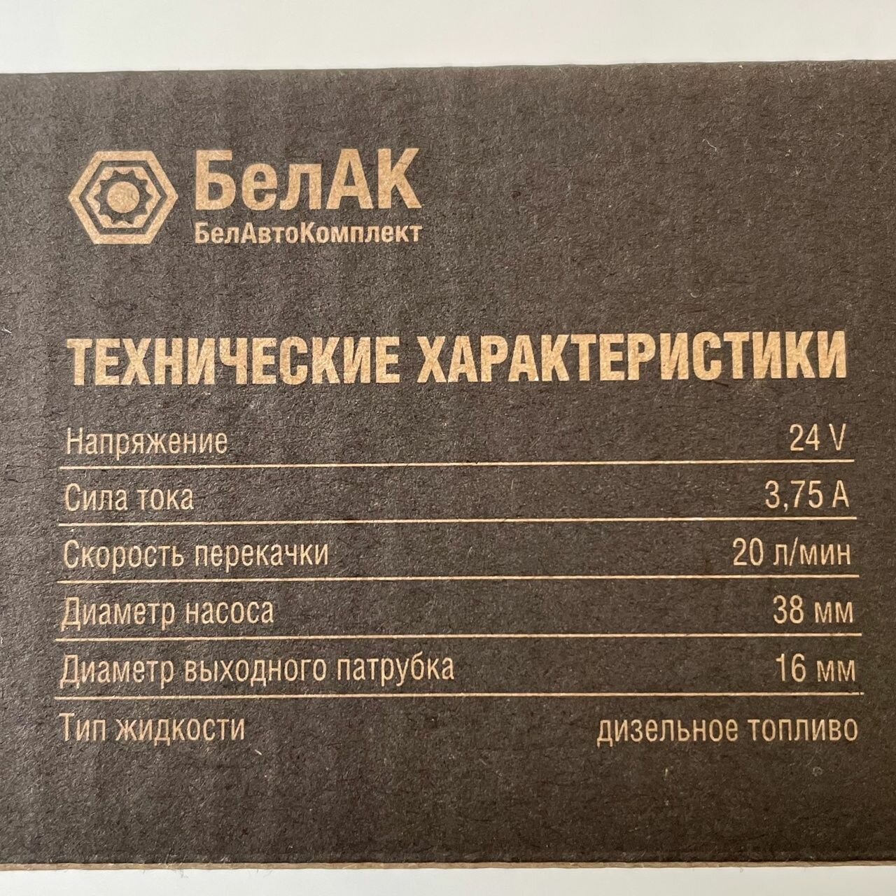 Насос перекачки топлива погружной БелАК 24V d38 БАК.17438