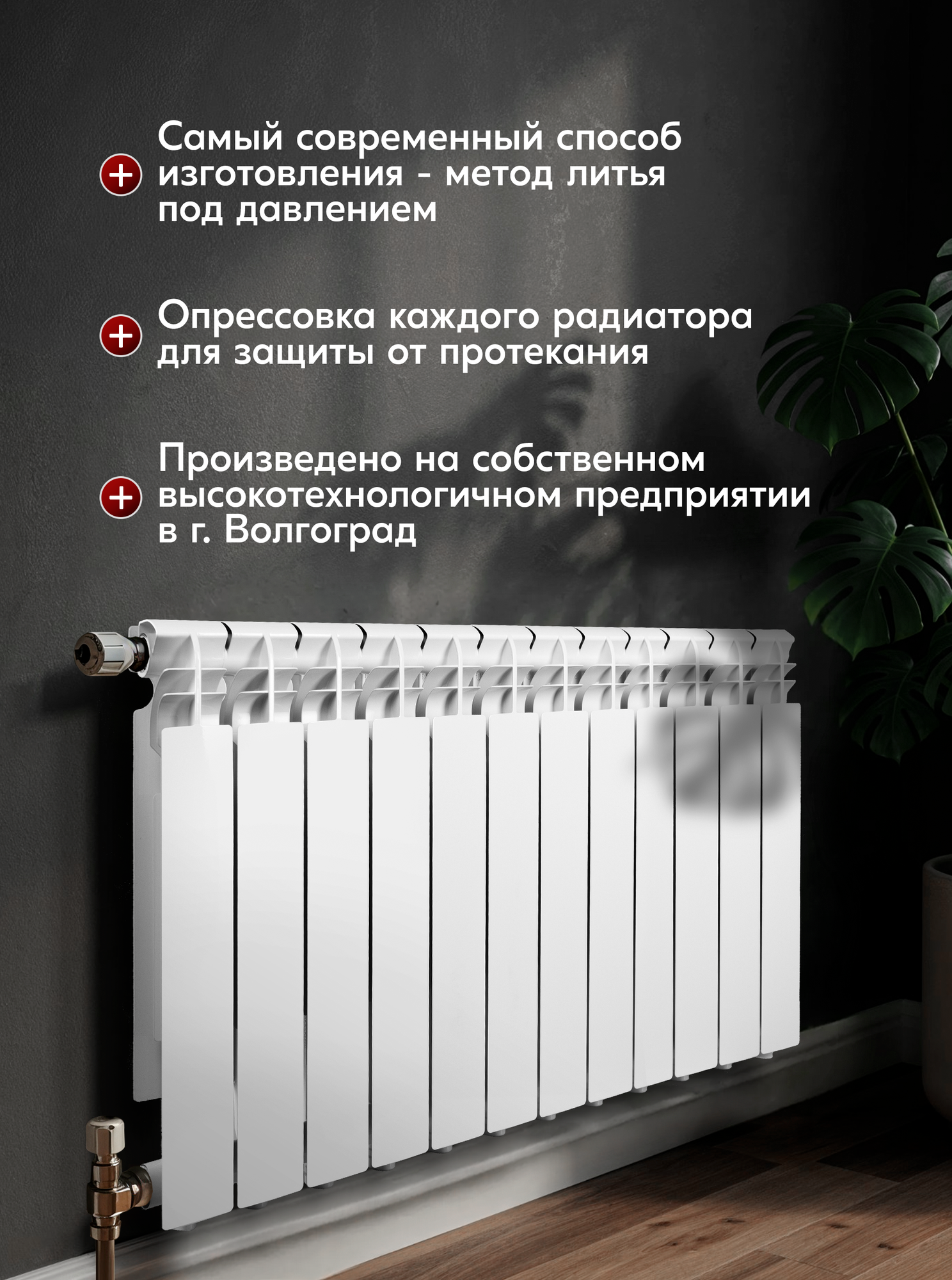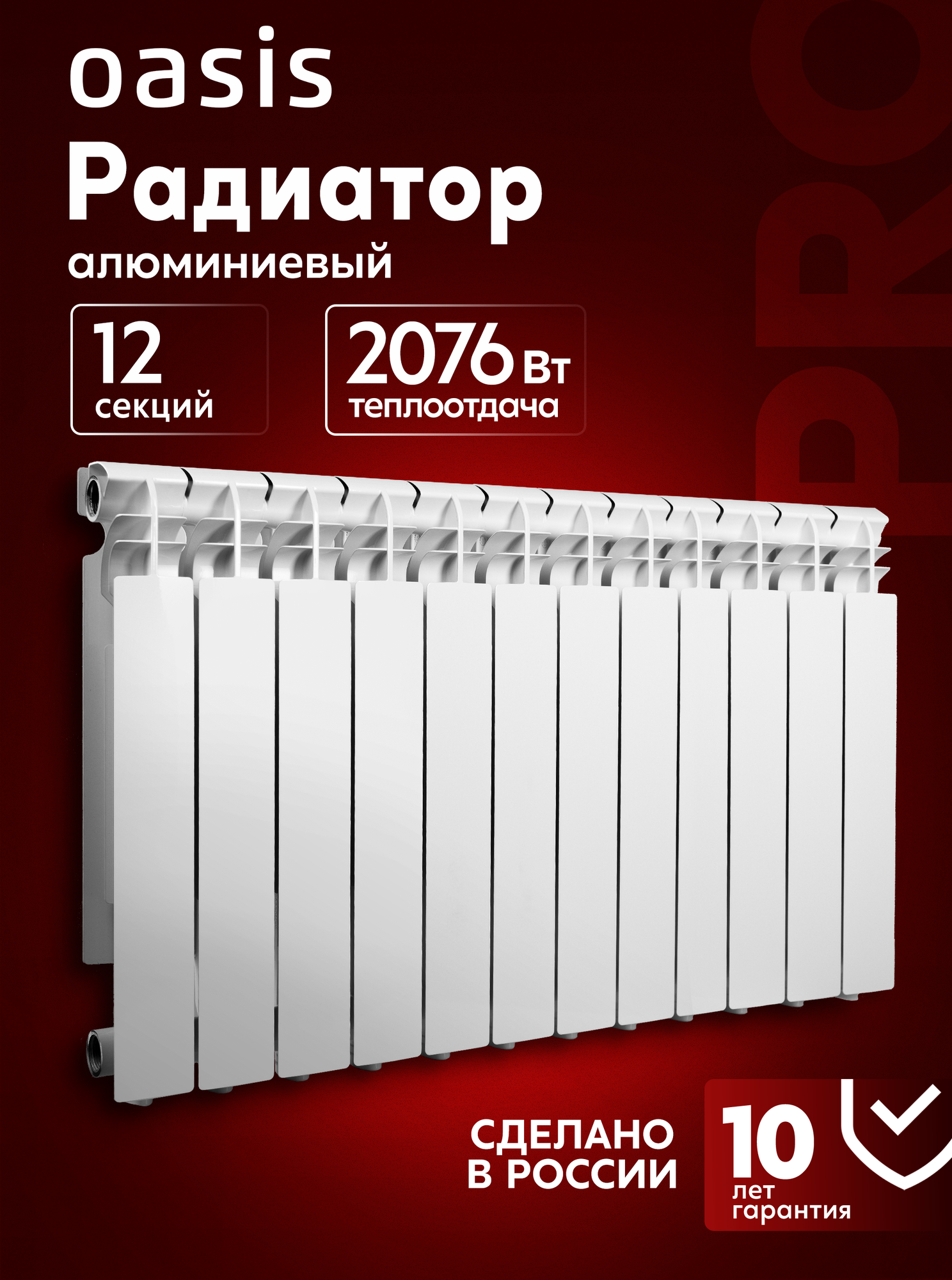 Алюминиевый радиатор Oasis – это прибор, обеспечивающий отопление помещения, изготавливаемый из алюминия. Радиаторы Oasis Pro гладкие, легкие, компактные и не требуют окраски. Производятся самым современным в настоящее время способом - методом «литья под давлением», каждая секция радиатора выливается целиком и к готовой секции приваривается донышко (отстойник). Они обеспечивают быструю передачу тепла воздуху в обогреваемом помещении. Радиатор имеет повышенную коррозийную устойчивость внутренней отделки, что предохраняет прибор от образования ржавчины. В процессе производства прибор проходит современную систему контроля качества на различных этапах, что гарантирует их надежность использования в течение многих лет.Преимущества Произведены на технологичном европейском оборудовании в г. Волгоград Самый современный способ изготовления - метод литья под давлением Огромный запас прочности, высокая теплоотдача Опрессовка каждого радиатора – защита от протекания Многоступенчатая система контроля качества Выдерживают повышенное давление в системе Повышенная коррозийная устойчивость Подходят для закрытых систем отопления
