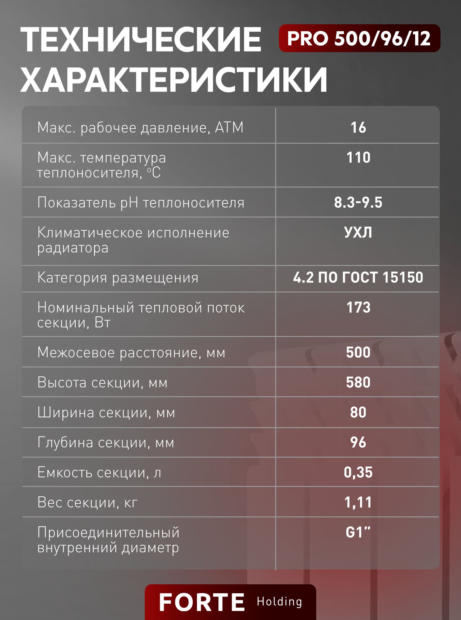 Радиатор алюминиевый литой Oasis Pro 500/96 8 секций Pro 500/96 8 секций (алюминий)