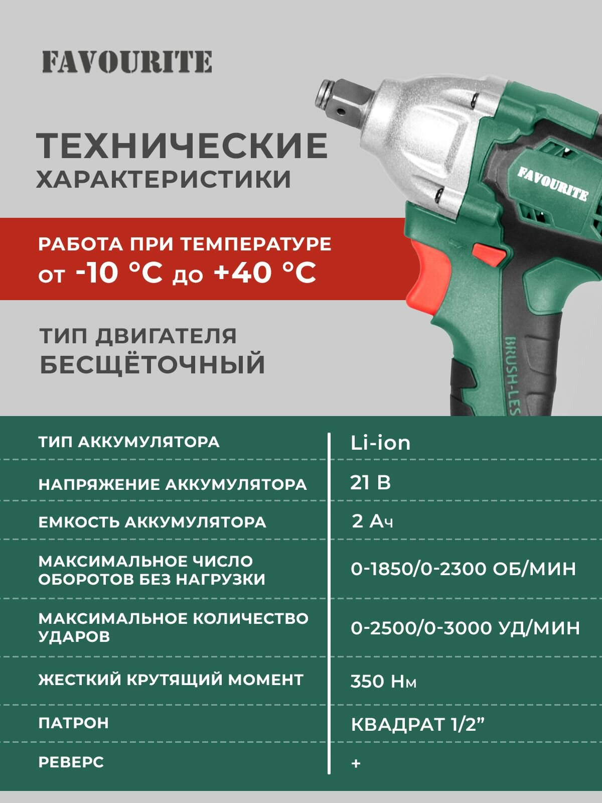 Гайковерт аккумуляторный Favourite OBS 21 TW 150002121 21В Без АКБ и ЗУ бесщеточный совместимость с Makita LXT