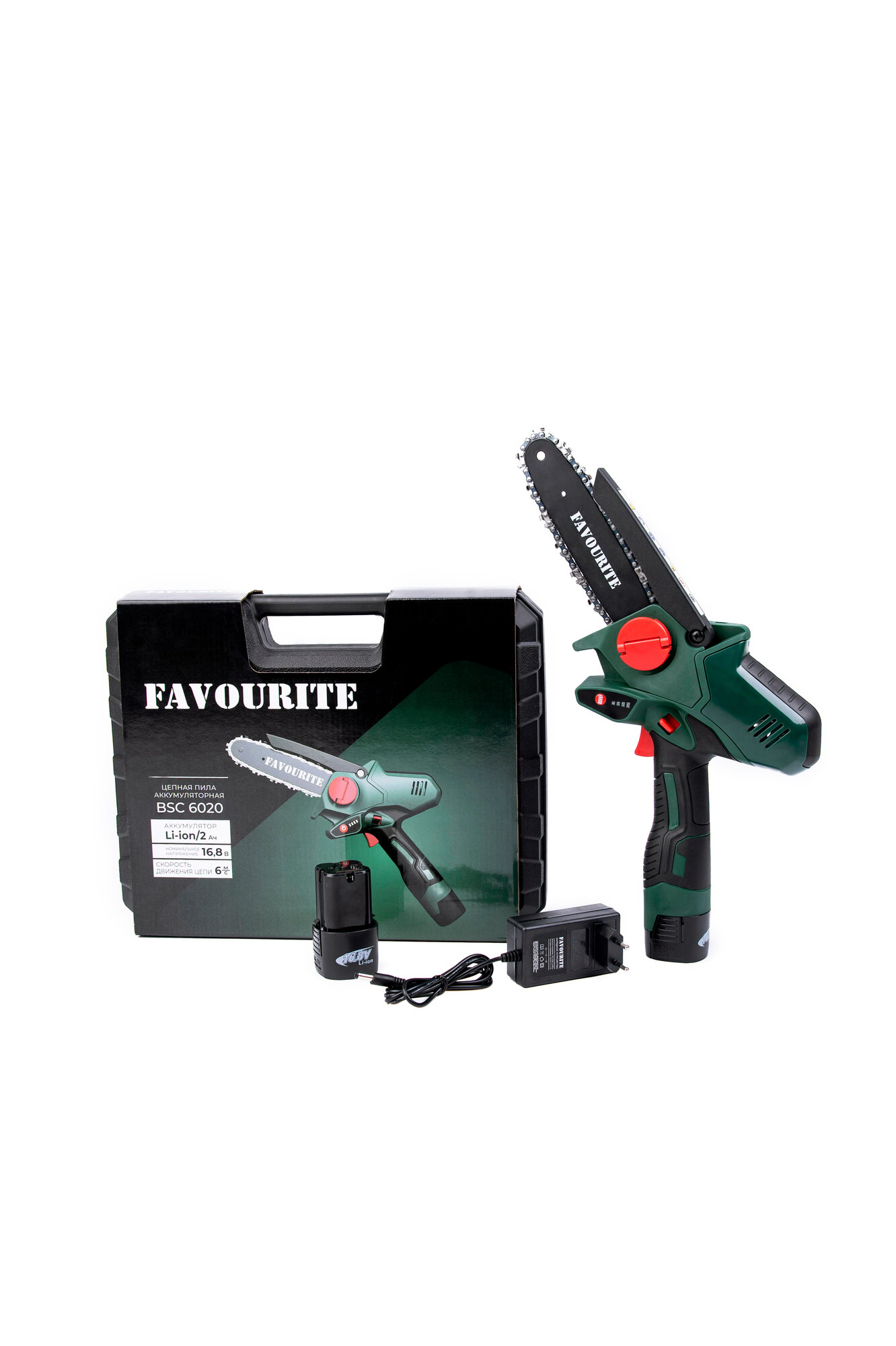Цепная пила аккумуляторная Favourite BSC 6020 (с 2мя аккумуляторами 16.8 В 2 Ач длина шины 16 см кейс) 160001620 BSC 6020 160001620