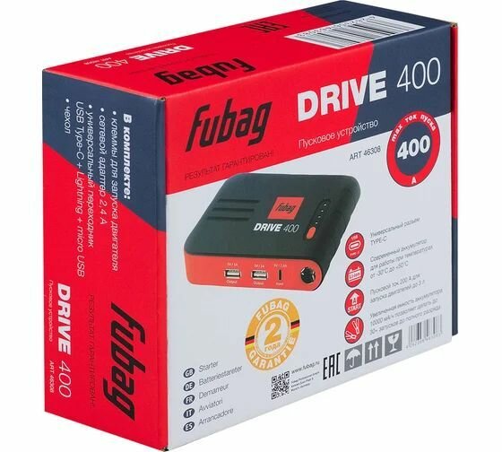Пусковое устройство Fubag DRIVE 600 (ток запуска 600А емкость аккумулятора 18000 м/А*ч type C) 46310 DRIVE 600 46310