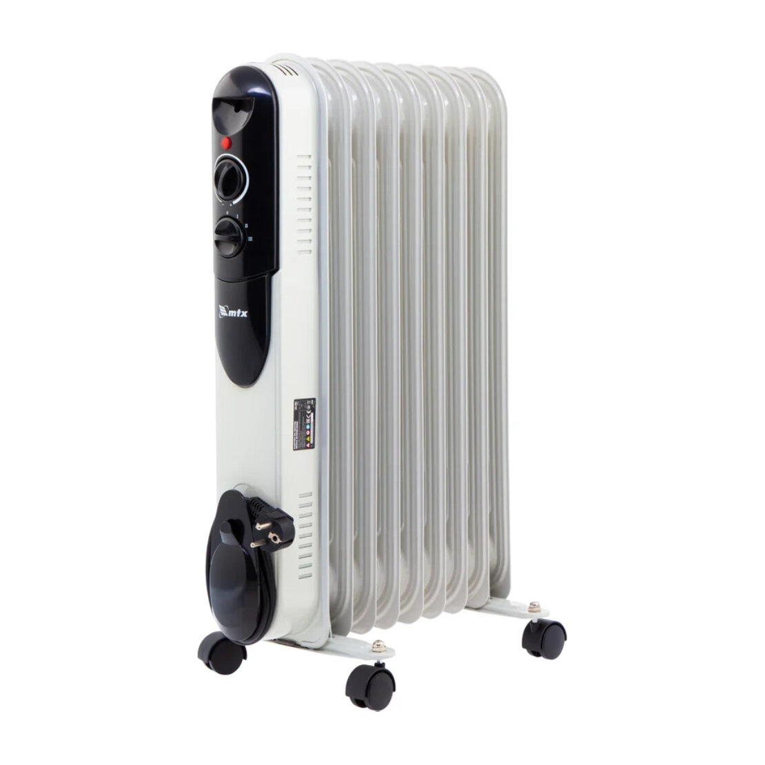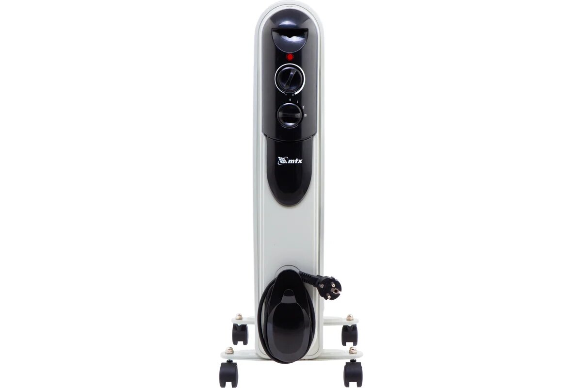 Масляный обогреватель MTX OCH-2000 98303 максимальной мощностью 2000 Вт питается от сети 230 В и предназначен для обогрева кухни, комнаты, офиса или других помещений площадью до 20 кв. м. Нагревательная поверхность с 9 секциями не сушит воздух и не вызывает появление неприятных запахов. Обогреватель работает абсолютно бесшумно, поэтому его использование не вызывает дискомфорт.Преимущества 3 режима работы — можно установить мощность нагрева 800, 1200 и 2000 Вт в зависимости от площади помещения Автоматическое поддержание температуры — механический термостат включает и отключает обогреватель по мере необходимости для достижения заданных параметров работы Безопасность — система защиты отключает обогреватель при опрокидывании и перегреве Удобная эксплуатация — о работе обогревателя информирует световой индикатор Легкое перемещение — обогреватель оснащен 4 колесами, а на корпусе имеется удобная ручка Продуманное хранение — конструкцией предусмотрен кронштейн для намотки сетевого кабеля и крепления вилки