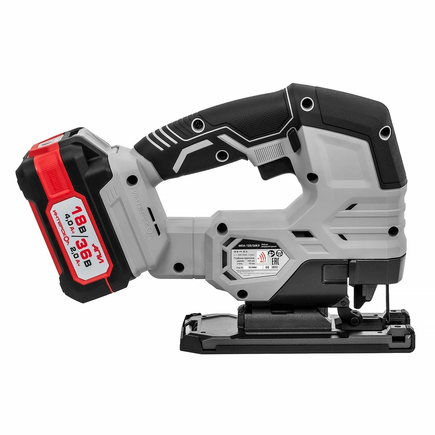 Аккумуляторный лобзик Интерскол МПА-125/36ВЭ 822.2.2.70 с бесщеточным двигателем (Li-ion АПИ 2 аккум. 36 В 20 Ач ЗУ кейс)