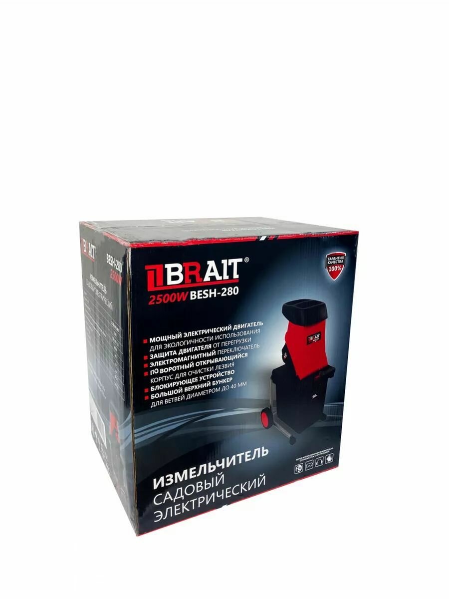Измельчитель садовый электрический Brait BESH-280 33.02.001.069 (25 кВт 4050об/мин макс. диаметр веток 40 мм контейнер 50 л)
