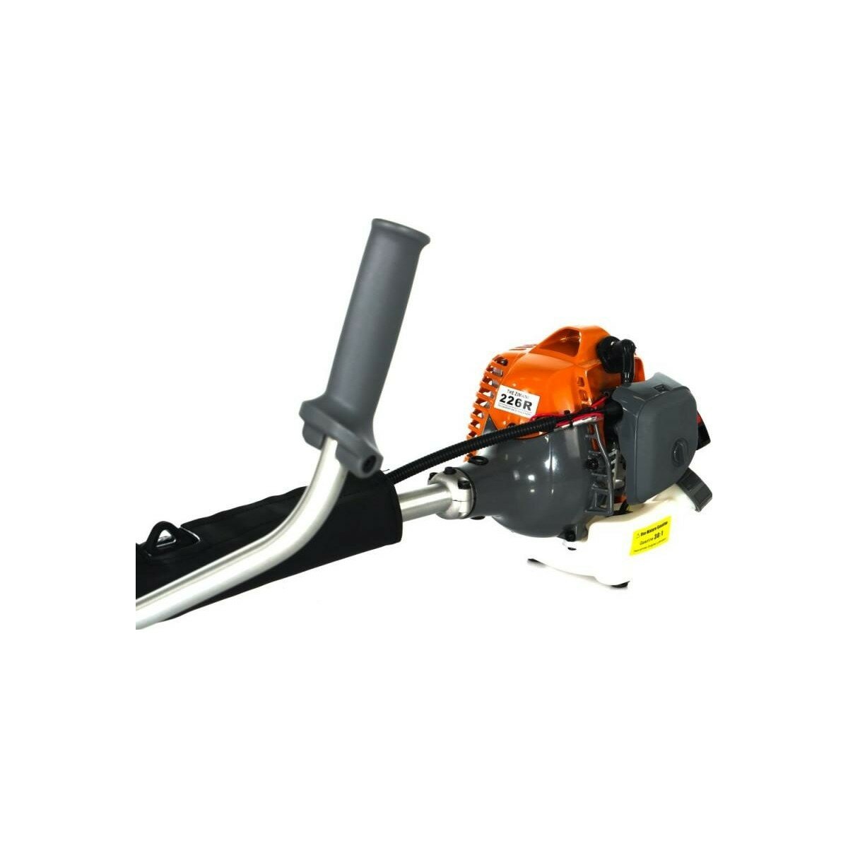Популярная модель мотокосы мощностью 1.1 л.с., которая легко косит газон, высокую траву, крупные сорняки, молодую поросль деревьев или кустов. Триммер ZimAni 226R - это аналог мотокосы Husqvarna 226, произведенная под российским брендом ZimAni. Как и триммер Husqvarna 226, триммер ZimAni обладает всеми теми же характеристиками, относящими его к профессиональному классу и способен работать до 8 часов в день в самых сложных условиях.Преимущества Двигатель G26L (Japan technologies from Zenoah Komatsu), мощностью 1.1 л.с. и обладающий высоким крутящим моментом 23 Н*м. Частота включения сцепления 4200 об/мин. Частота вращения на холостом ходу 3000 об/мин. Частота, соответствующая максимальной мощности 7500 об/мин Стандартная ременная оснастка. Ранцевая (на оба плеча) - оснастка для легких моделей бензокос Оптимизированный редуктор Hi-speed для кошения травы - Оптимизированная длина штанги и редуктор, обеспечивающий повышенный крутящий момент, облегчают работу и позволяют режущему оборудованию работать параллельно земле Регулируемая рукоятка - Регулируемая эргономичная рукоятка для максимального комфорта. Легко транспортировать благодаря складной и поворачивающейся рукоятке Облегченный пуск - Дополнительная пружина стартера и праймер обеспечивают легкий старт Электронное зажигание Эффективный двойной воздушный фильтр - уменьшает стоимость обслуживания и износ двигателя Топливоподкачивающий насос - топливо-подкачивающий насос облегчает запуск. Праймер подкачивает топливо в карбюратор для легкого запуска Прозрачный топливный бак - для контроля уровня топлива Карбюратор Walbro Вынесенный стартер - конструкция вынесенного стартера облегчает замену шнура стартера, если это необходимо. Сопротивление шнура стартера снижено на 40% Комбинированный защитный кожух - можно использовать с ножом для травы или триммерной головкой Кованый соединительный стержень - и трехсекционный коленчатый вал для продления срока службы Прочная конструкция рукояток - для повышения прочности рукоятка прикреплена к штанге литым хомутом Долговечная муфта - облегчает тяжелую работу при использовании длинных кордов и режущего ножа большого диаметра