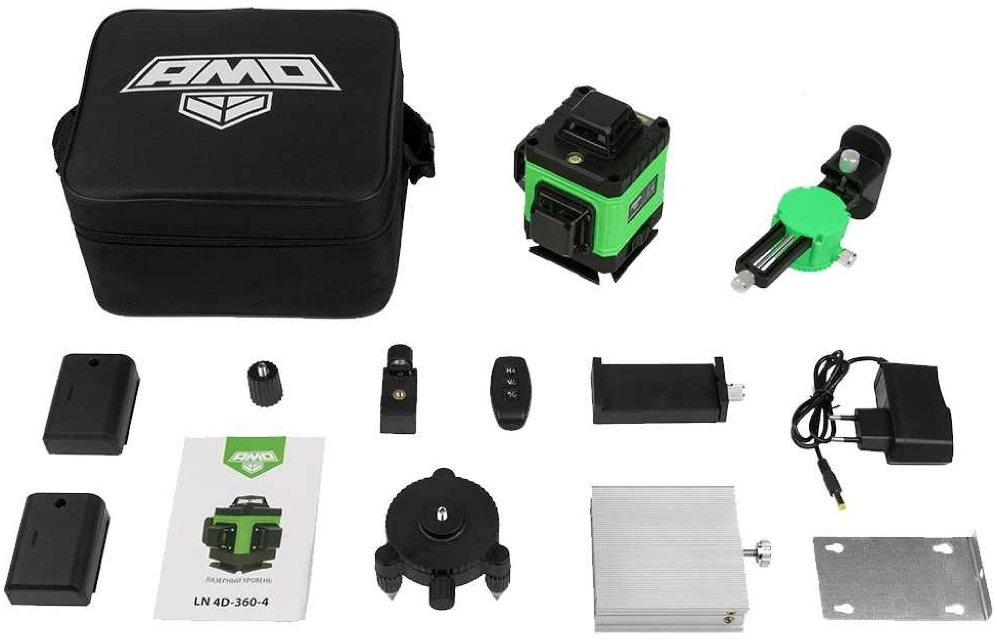Лазерный уровень Amo LN 4D-360-4 028 мм/м 360° * 4 плоскости зелёный луч дальность 25 м. аккум. - 2 шт.