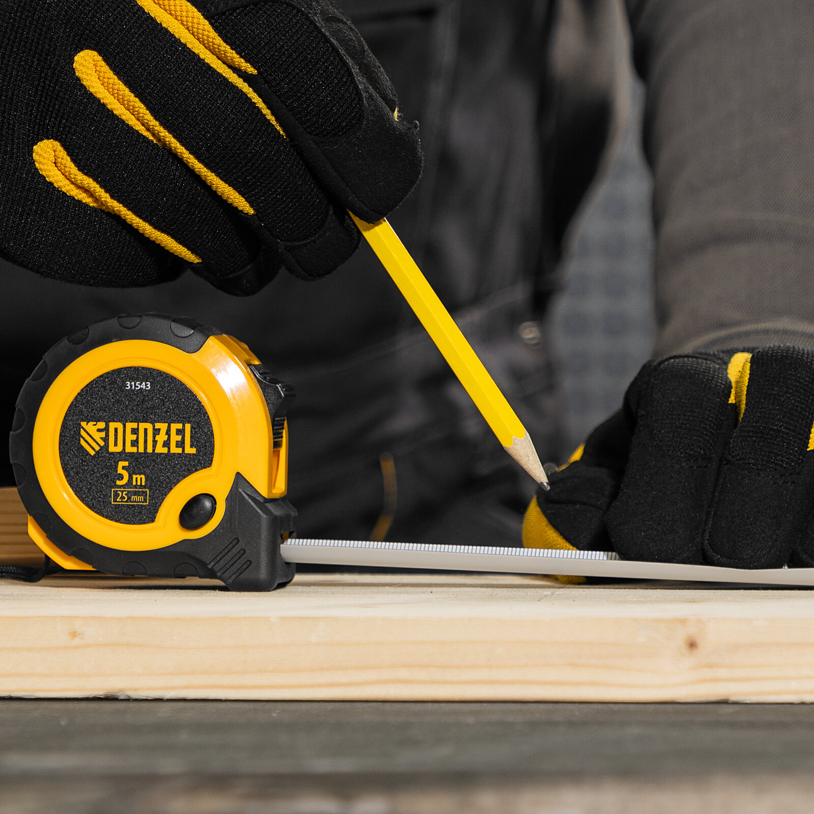 Рулетка DENZEL 31543 5м х 25мм двухкомп. корпус кнопка-пауза