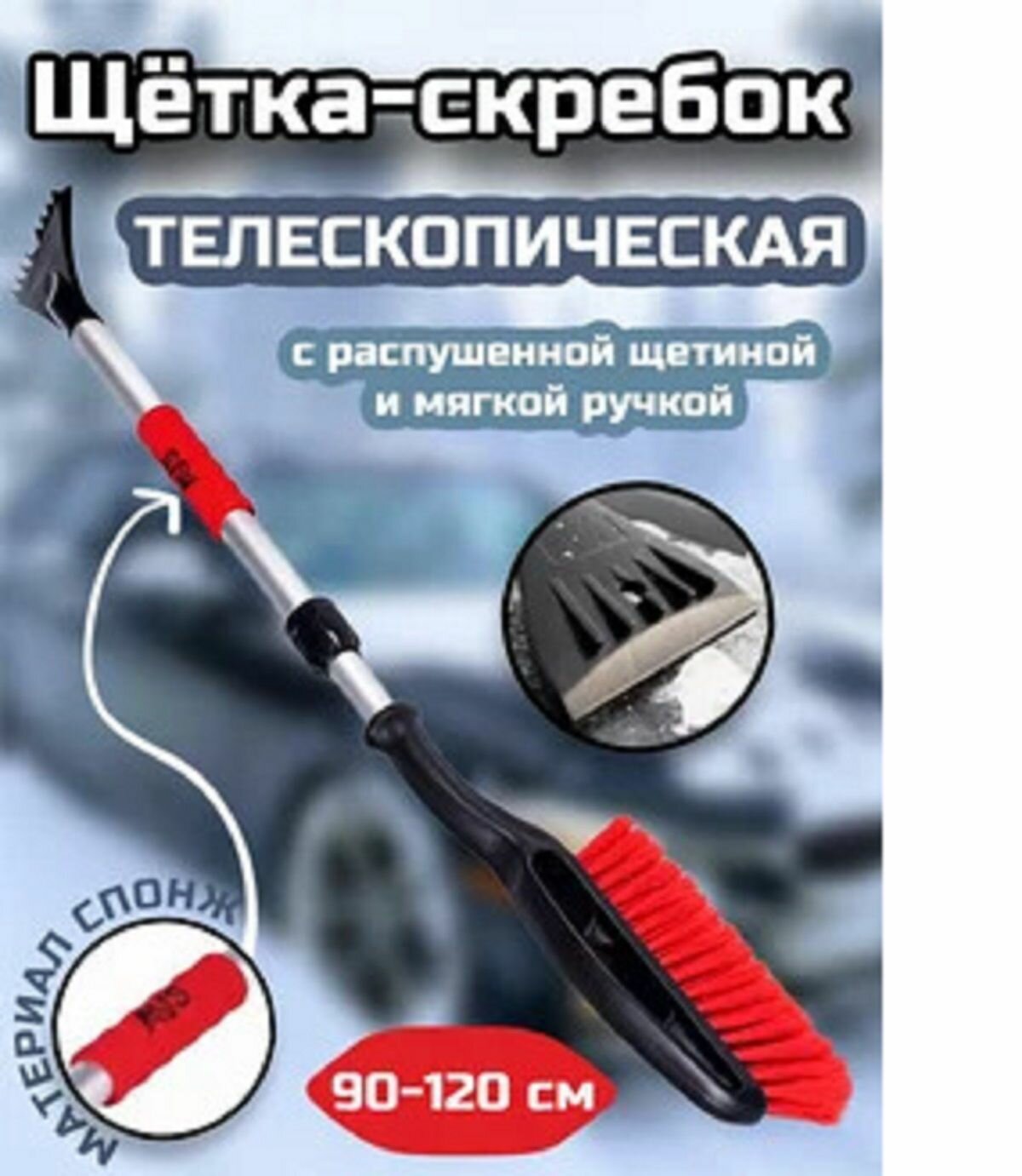 Щётка-скребок AVS SB-6333 XL A80930S 90-120 см телескопическая с распушенной щетиной и мягкой ручкой A80930S