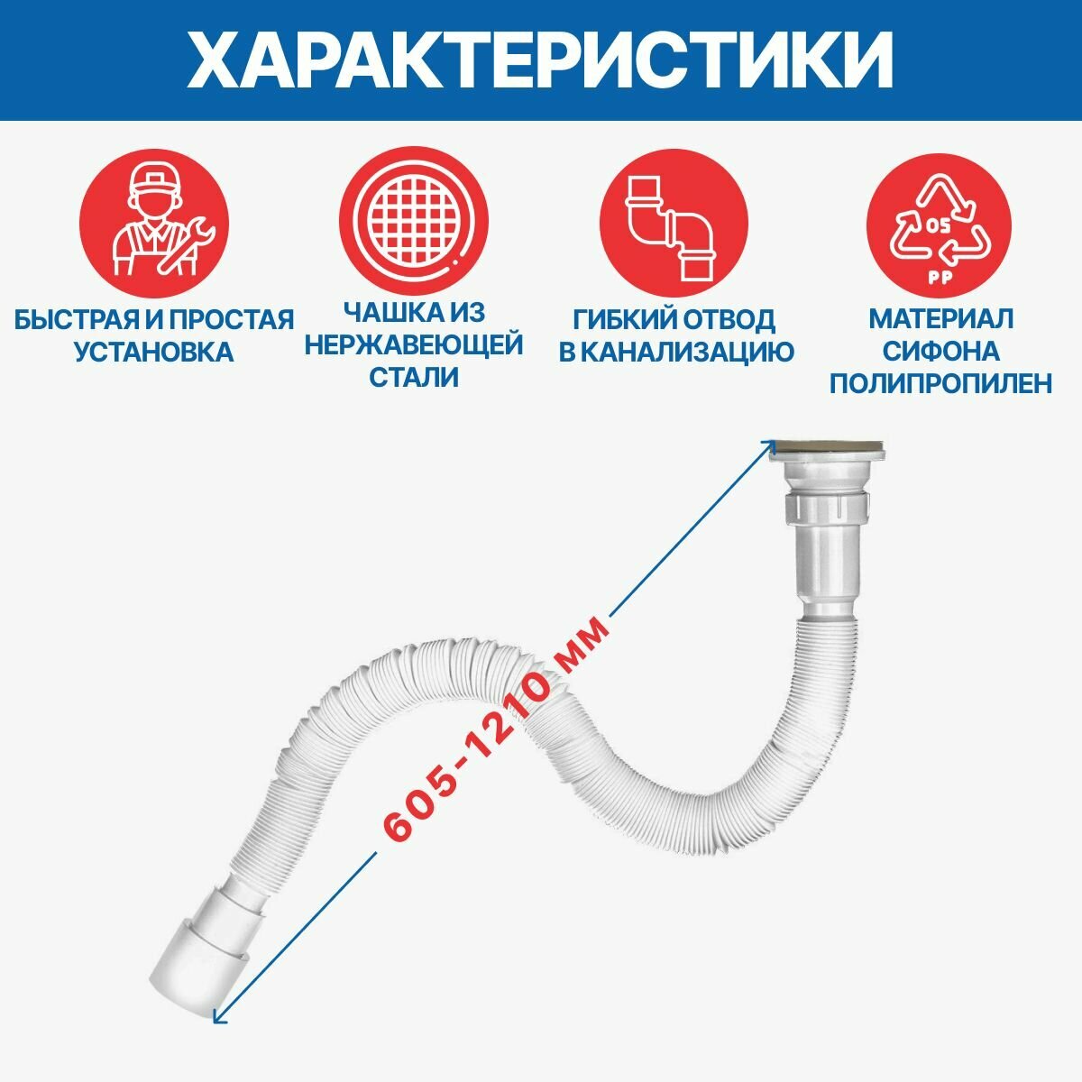 | Вид сифона | гофрированный |