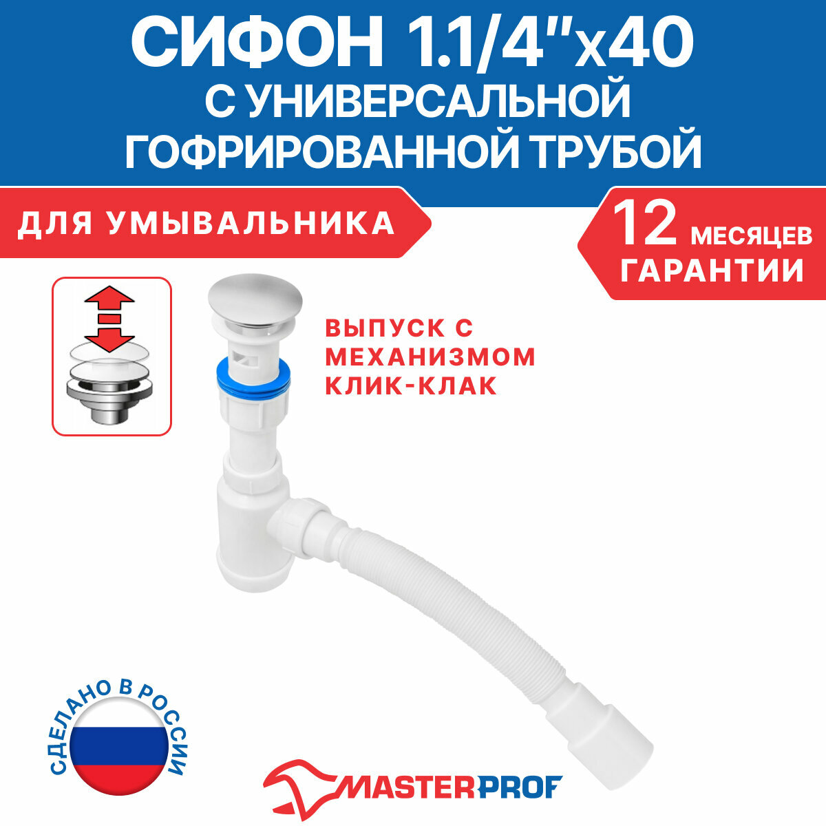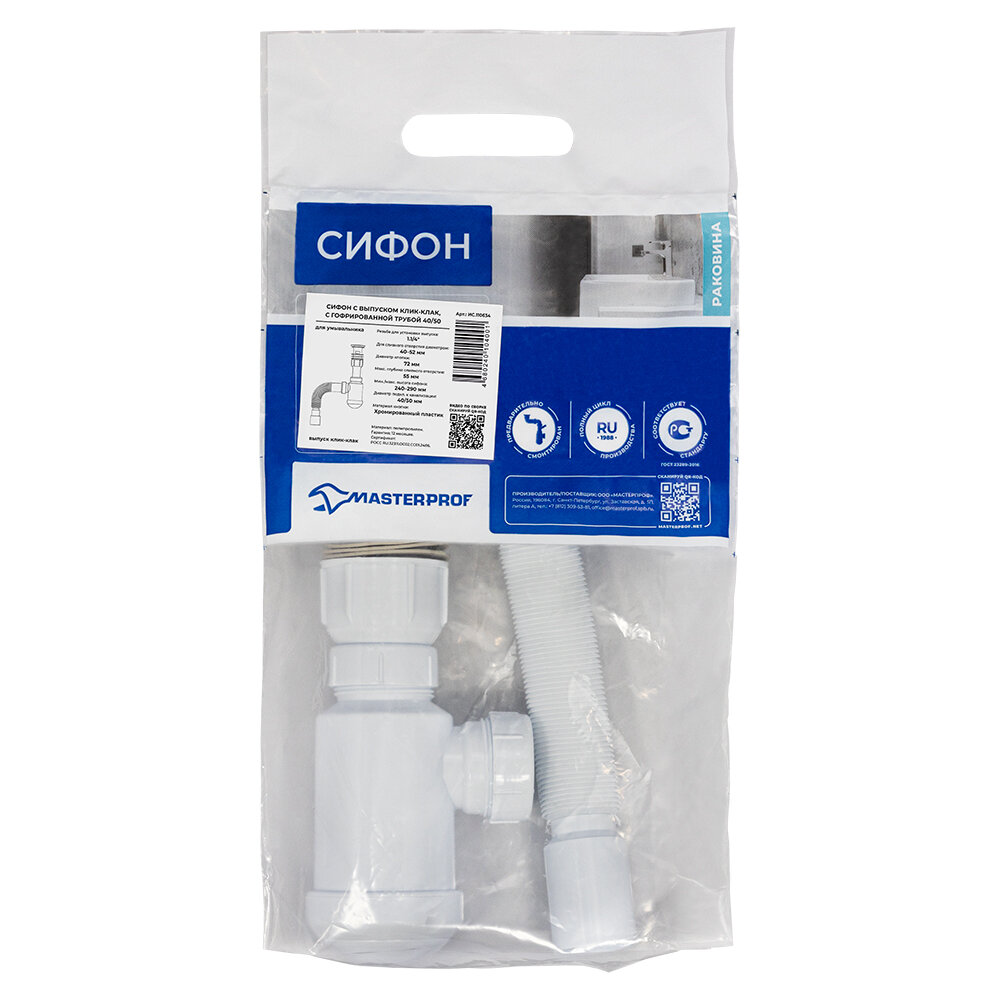 Сифон для умывальника MasterProf 1.1/4"х40 (пластиковый выпуск с системой клик-клак) с г.т. 40х40/50 ИС.110634