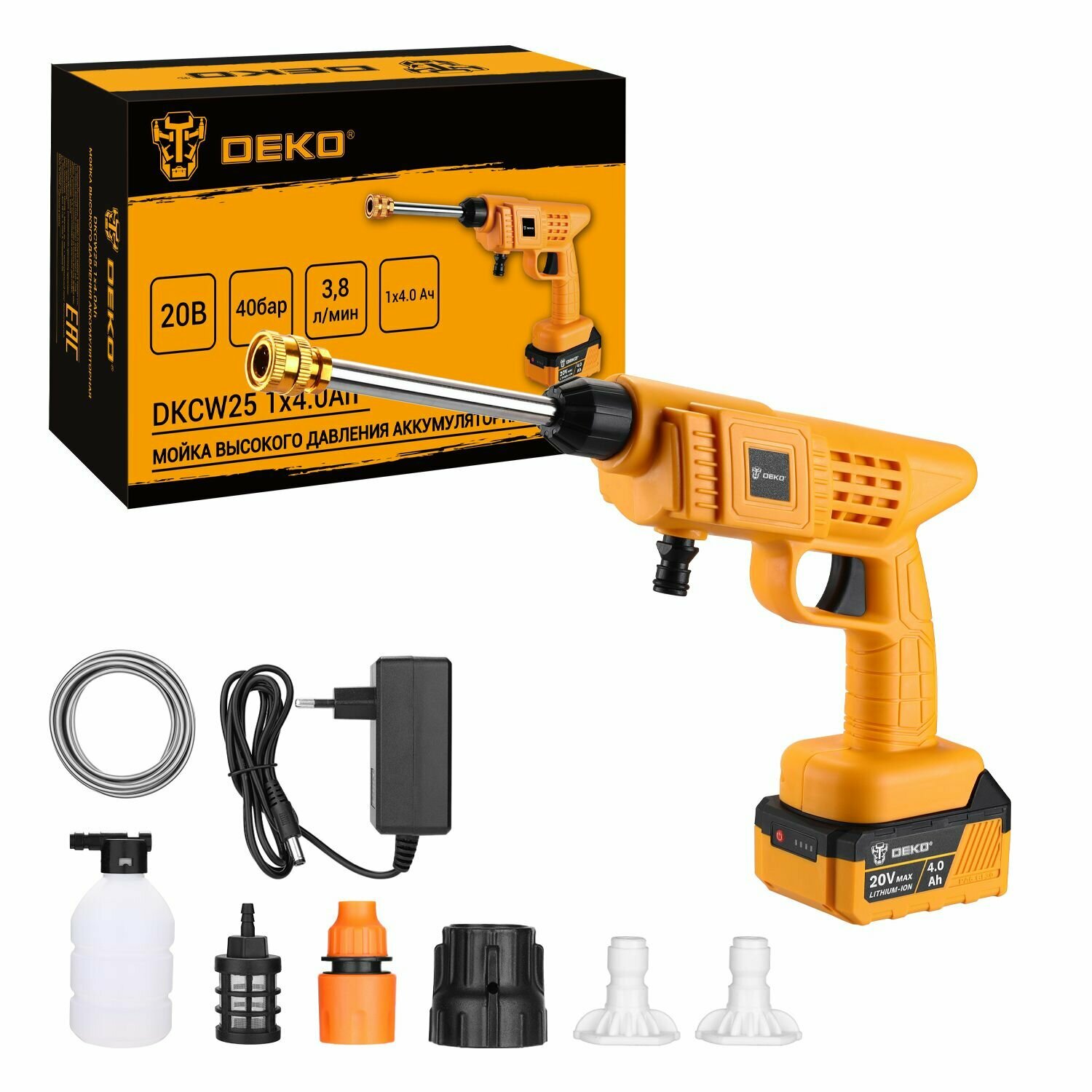 Мойка высокого давления аккумуляторная Deko DKCW25 063-4490 40 бар 1х4.0Ач