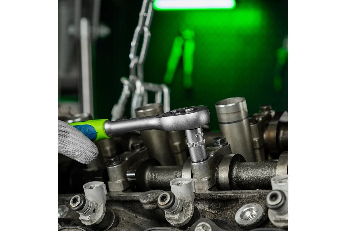Набор инструментов Сибртех 14170 упакован в пластиковый кейс и состоит из 215 предметов с присоединительным размером 1/2", 3/8", 1/4", предназначенных для монтажа и демонтажа резьбового крепежа с разными типами шлицев. В комплект поставки входят карданы, удлинители и переходники, облегчающие работу в труднодоступных местах. Набор используется для ремонта автомобилей, а также будет полезен в быту.ПреимуществаИзносостойкость элементы набора изготовлены из высокопрочной стали.Надежная защита от коррозии на инструменты нанесено матовое хромовое покрытие.Эффективная работа у ключей-трещоток с 45 зубьями имеется механизм быстрого сброса и переключатель реверса с металлическим флажком.Прочная фиксация шариковый замок на трещотках, воротках, шарнирах и удлинителях надежно удерживает торцевые головки.Эргономичность двухкомпонентные рукоятки трещоточных ключей удобно ложатся в руку.Удобное хранение и транспортировка инструменты и насадки упакованы в ударопрочный пластиковый кейс с металлическими замками.
