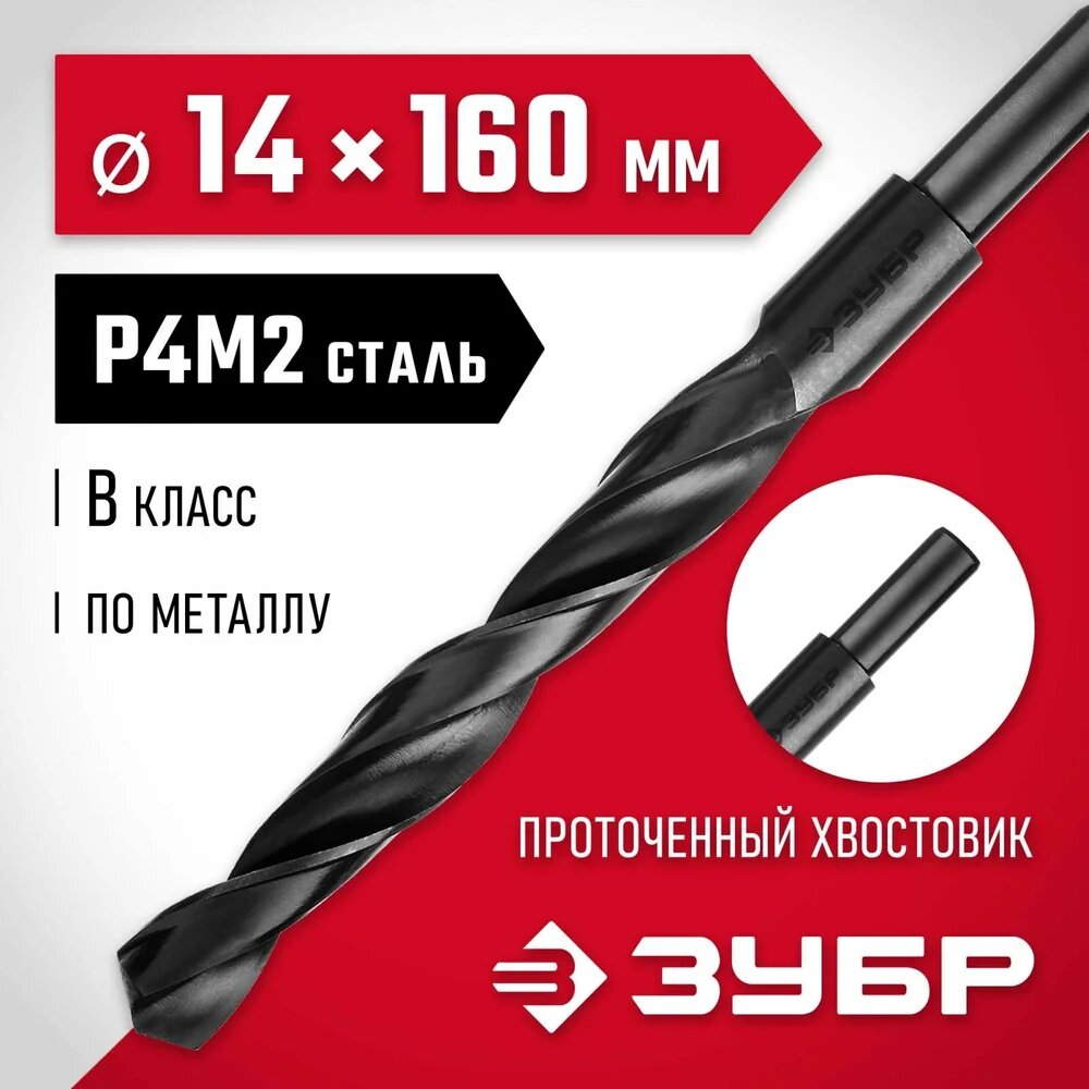 Сверло по металлу ЗУБР Мастер 29605-14 — высококачественный инструмент предназначен для обработки легированных и углеродистых сталей с пределом прочности до 800Н/мм^2, цветных металлов, серого чугуна и пластмассы.Преимущества Высококачественная сталь P4M2 обеспечивает прочность и долговечность сверла Прокатанная U-образная спираль гарантирует высокую точность сверления Угол заточки 118 градусов облегчает вход сверла в металл и обеспечивает гладкое сверление Цилиндрический проточенный хвостовик надёжно крепится в патроне дрели или перфоратора Подходит для большинства стандартных держателей с диаметром хвостовика 10 мм