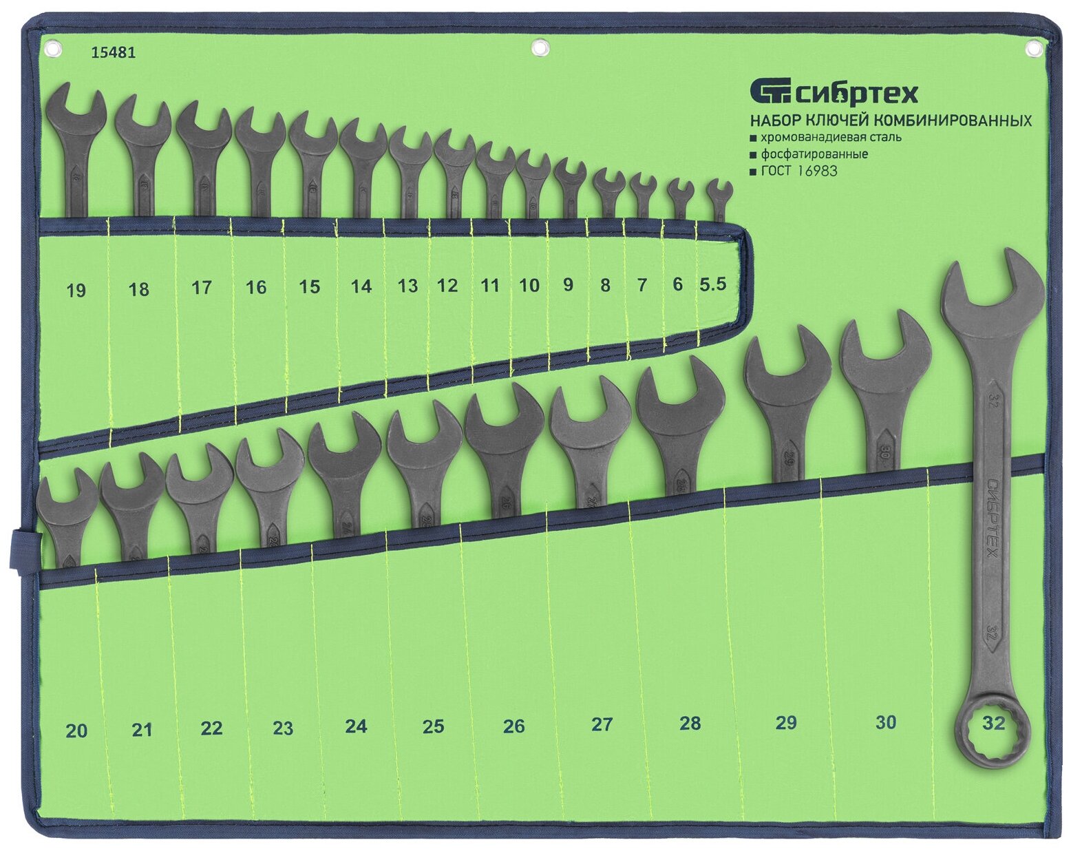 Набор ключей комбинированных Сибртех 15481 55 - 32 мм 27 шт. CrV фосфатированные