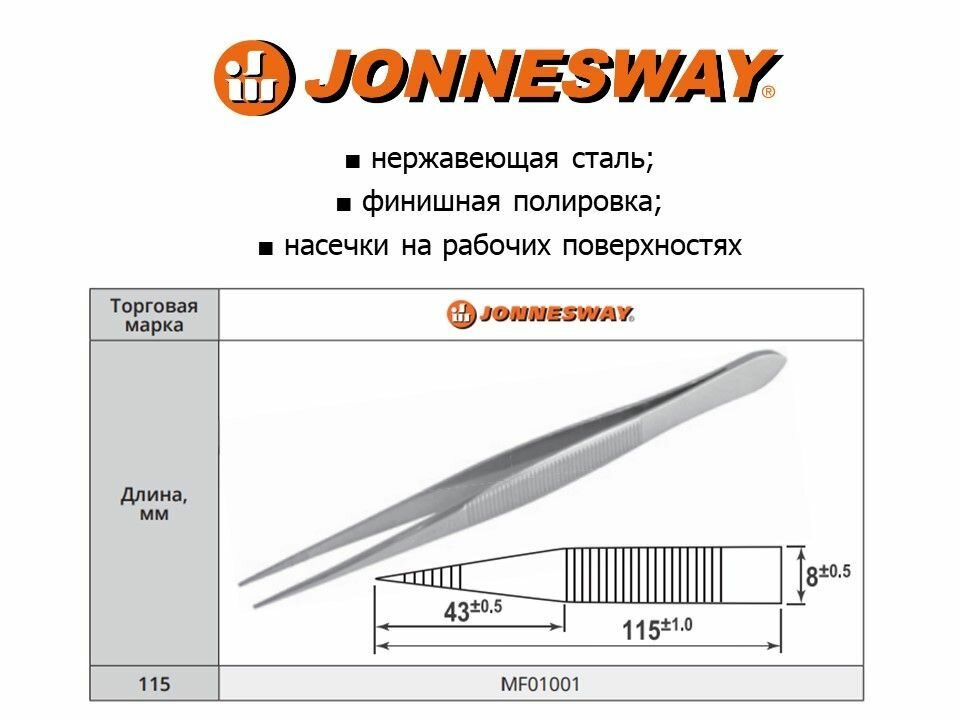 Пинцет универсальный Jonnesway MF01001 115 мм