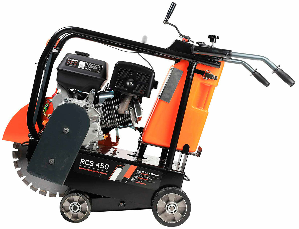 Швонарезчик PATRIOT RCS 450 — это усовершенствованная модель с утолщенной рамой, максимальная глубина реза которой достигает 200 мм. Могут устанавливаться диски диаметром от 350 до 500 мм. Имеет высокую мобильность, даже при работе в местах с затруднённым доступом, а также удобен в управлении.Преимущества Швонарезчик неприхотлив в обслуживании, что упрощает эксплуатацию, долговечен Оснащён бензиновым двигателем мощностью 15 л.с. Удобное расположение бака для воды, эргономичная прорезиненная рукоять для комфортной работы Крупные колёса обеспечивают высокую проходимость Алмазный диск обеспечивает высокую производительность работы (гладкий и красивый разрез) Швонарезчик поставляется с баком для воды (для распыления на режущее лезвие), чтобы продлить срок службы диска