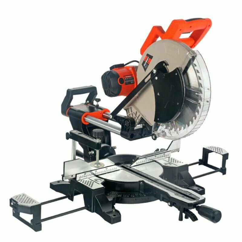 | Комплектация | Пила торцовочная Пильный диск (установлен) Мешок для сбора пыли Струбцина Удлинитель стола (слева и справа) 2шт Комплект угольных щеток Инструкция для эксплуатации |
