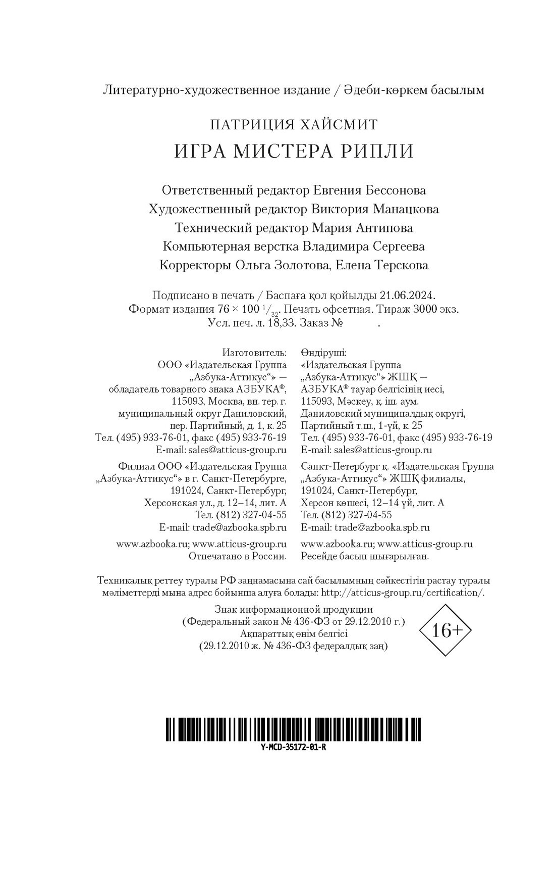 Книга: Игра мистера Рипли (Патриция Хайсмит); Азбука, 2024