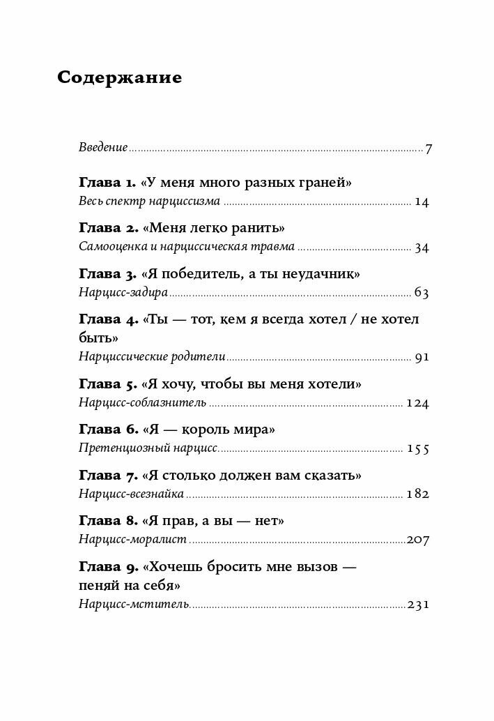 Эгоцентрики, все помыслы которых сосредоточены только на них самих, вот кто такие нарциссы. Со стороны они часто кажутся нам яркими и интересными, но на самом деле это умелые и жестокие манипуляторы, готовые на все ради того, чтобы быть в центре внимания. Их бывает очень непросто распознать, но научиться делать это жизненно необходимо: общение с нарциссами может повредить вашей карьере, разрушить отношения с друзьями и близкими, подорвать здоровье. Что делать, если таким человеком оказался ваш родственник, начальник, друг или партнер? Автор книги рассказывает о правилах поведения с нарциссами любого типа: моралистами, мстителями, провокаторами и многими другими. Он анализирует наиболее распространенные поведенческие модели и дает рекомендации, как не поддаваться влиянию самовлюбленных типов.Почему книга достойна прочтенияВы узнаете много интересного о людях с нарциссическим расстройством личности. И одним из неприятных открытий будет то, что истинные нарциссы не просто тщеславны и утомительны, они опасны.В книге описаны основные типы нарциссов. Возможно, вы узнаете в одном из них своего друга или родственника, начальника, коллегу или любимого человека. Или себя.Автор всесторонне рассматривает феномен нарциссизма. Он рассказывает о причинах его возникновения, о нюансах поведения нарциссов, о методах их воздействия на обычных людей и о том, как успешно сопротивляться этому воздействию.