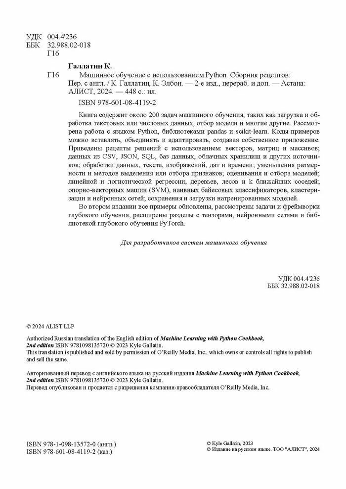 Машинное обучение с использованием Python Сборник рецептов: 2 издание (Крис Элбон, Кайл Галлатин), 2024