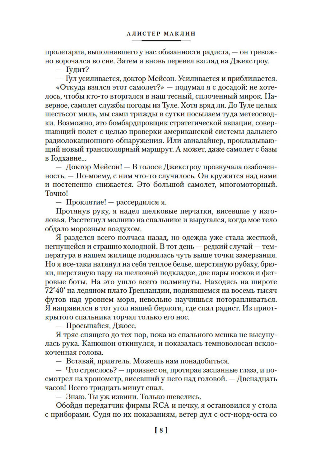 Алистер Маклин (19221987) британский писатель, автор 28 остросюжетных романов и приключенческих рассказов, сценарист. Его имя широко известно читателям всего мира. Книги Маклина разошлись тиражом более 150 миллионов экземпляров, по его романам, сценариям и сюжетам было снято 18 фильмов. В 1983 году Университет Глазго присвоил писателю степень доктора литературоведения. С 1941 по 1946 год Маклин служил на флоте, принимал участие в военных операциях и полярных конвоях, что дало ему богатейший материал для творчества и определило тематику его лучших книг. Настоящий сборник объединяет тема Арктики, и открывает его роман «Ночи нет конца». Авиалайнер терпит крушение в Гренландии. Сотрудники метеостанции спешат на помощь пассажирам, и обстоятельства катастрофы заставляют предположить, что среди выживших есть убийца... С полярной станции в Ледовитом океане поступает сигнал бедствия, и в этот район направляется атомная субмарина («Дрейфующая станция Зет»). В ходе сложнейшей спасательной операции счет идет на часы... На отдаленный остров в Баренцевом море везут съемочную группу, но сценарий для большинства остается тайной («Остров Медвежий»). Во время плавания внезапно умирает несколько человек, и возникает подозрение, что выбор жертв не случаен... В романе «Атабаска» действие происходит на Аляске. Нефтяная компания получает анонимную угрозу саботажа, но расследование заходит в тупик...