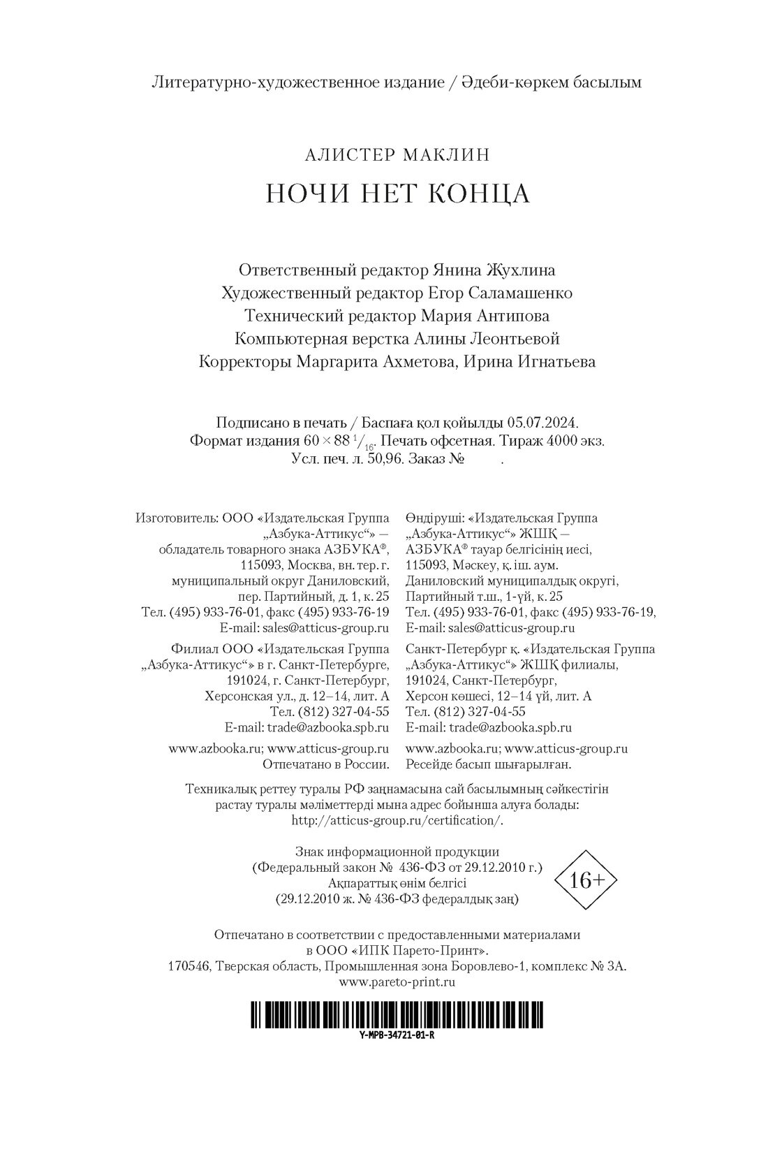 Книга: Ночи нет конца (Алистер Маклин); Азбука, 2025