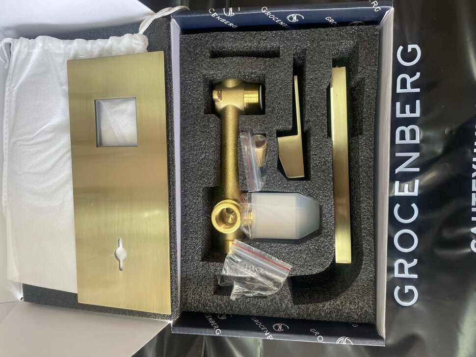 Смесители «Grohenberg» производятся из санитарной латуни с высоким содержанием меди (70%), при обработке и покрытии смесителей используются самые передовые технологии, двойное никель-хром гальваническое покрытие, порошковая окраска в камере высокого давления. Перед упаковкой и отправкой продукции, сантехника «Grohenberg» проходит контрольное тестирование на специальном оборудовании при наблюдении специалистов фабрики. Надёжный литой тяжёлый крепкий корпус выдерживает давление в 3 раза больше, чем давление в водопроводной системе и прослужит много лет без протечек. Рассчитан до 30 лет комфортной эксплуатации. Характеристика товара: Идеальные формы, эргономичный дизайн и плавный ход рычага добавляет наслаждения и удобство в использовании. Длина коробки-57 см, ширина коробки-10,5 см, высота коробки-39 см. Вес в коробке 5800 г Вес без коробки 5200 г Длина излива 16 см Ширина излива 4 см В комплект входит всё необходимое: Смеситель Лейка диаметр 8 см (3 режима) Верхний душ 30x30 см (квадрат) Шланг длина 1,5 м. Прокладки Эксцентрики Отражатели 18 на 13 см Отражатель маленький для носика 6 см Кронштейн для верхнего душа 37 см Стильное и яркое дополнение вашему интерьеру. Немецкое качество. Прямая продажа от завода-производителя бренда Grohenberg.Все товары бренда «Grohenberg» упакованы в крепкие коробки и проложены поролоном, это обеспечивает 100% гарантию того, что вы получите идеальный смеситель.