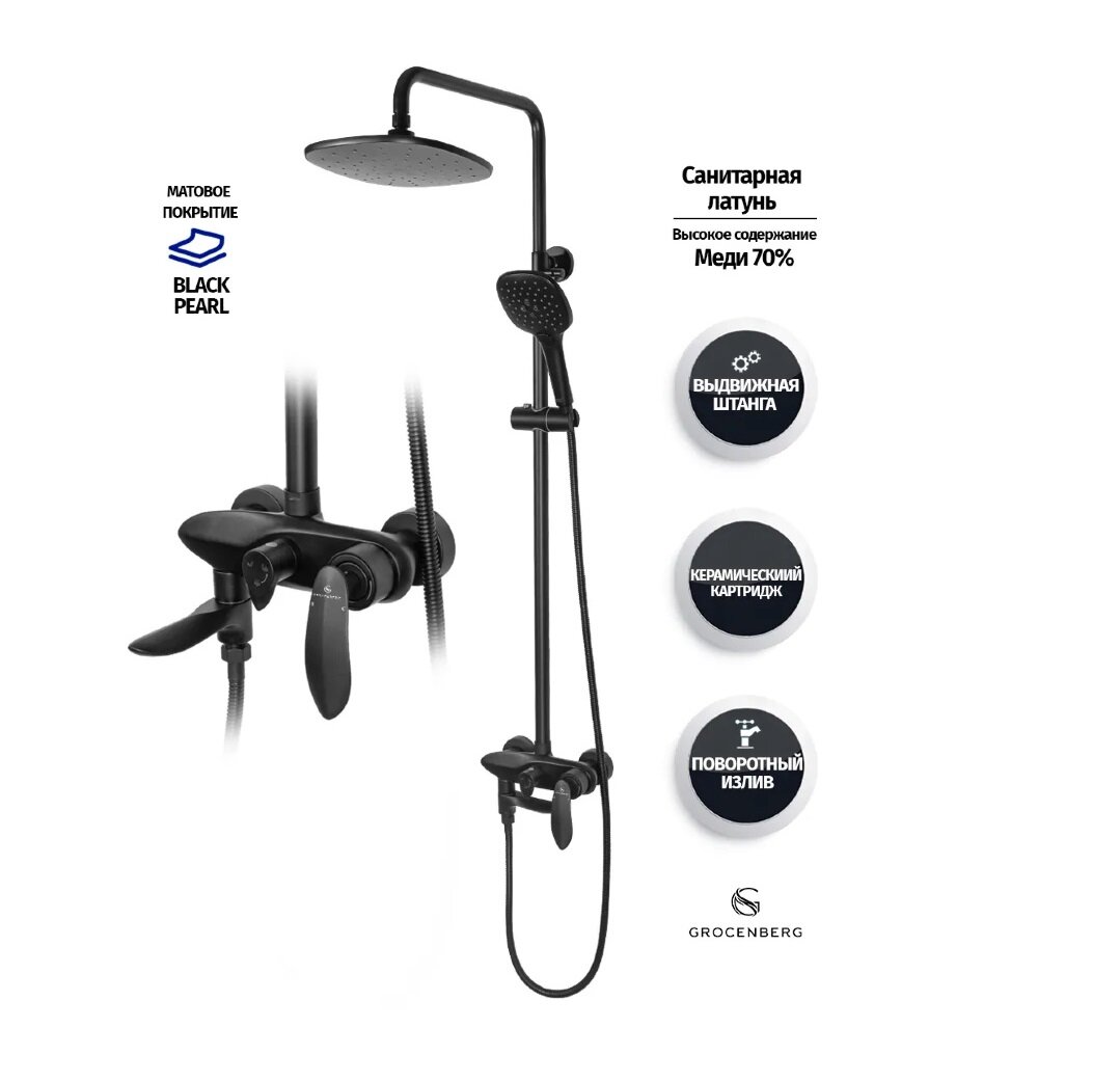 Душевая стойка Grocenberg черный Shower GB7001BL