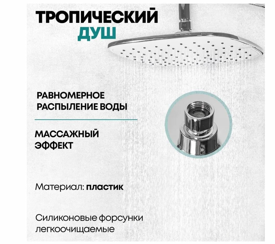 Смесители «Grocenberg» производятся из санитарной латуни с высоким содержанием меди (70%), при обработке и покрытии смесителей используются самые передовые технологии, двойное никель-хром гальваническое покрытие, порошковая окраска в камере высокого давления. Перед упаковкой и отправкой продукции, сантехника «Grocenberg» проходит контрольное тестирование на специальном оборудовании при наблюдении специалистов фабрики. Надёжный литой тяжёлый крепкий корпус выдерживает давление в 3 раза больше, чем давление в водопроводной системе и прослужит много лет без протечек. Рассчитан до 30 лет комфортной эксплуатации. Характеристика товара: Идеальные формы, эргономичный дизайн и плавный ход рычага добавляет наслаждения и удобство в использовании. Вес смесителя 4200 г Длина излива 17 см Ширина излива 4 см В комплект входит всё необходимое: Лейка: ширина 9 см Верхний душ: 26x19 см (прямоугольник) Штанга телескопическая: длина до 130 см Шланг: длина 1,5 м. Прокладки Эксцентрики Отражатели Стильное и яркое дополнение вашему интерьеру. Немецкое качество. Прямая продажа от завода-производителя бренда Groсenberg. Все товары бренда «Groсenberg» упакованы в крепкие коробки и проложены поролоном, это обеспечивает 100% гарантию того, что вы получите идеальный смеситель. Данный товар подойдет вам, если вы ищете смеситель для ванны и душа, душевой гарнитур, душевую систему, душевой комплект, душевую стойку, тропический душ со смесителем, душевую стойку со смесителем, стойку для душа, тропический душ комплект, душевой гарнитур никель, сатин. Комплектация Смеситель, ручная лейка, верхний душ, штанга, шланг, прокладки, эксцентрики, отражатели.