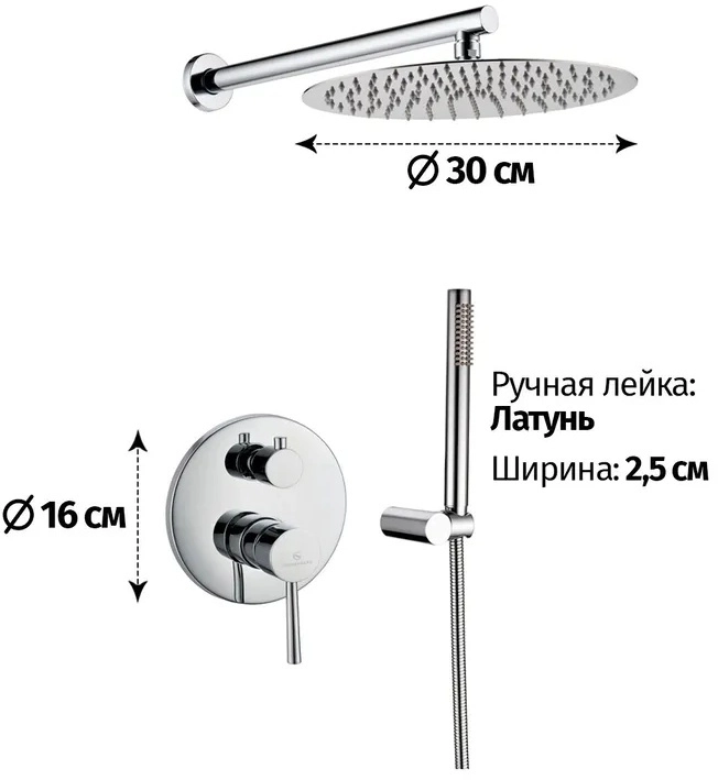 Смесители «Grocenberg» производятся из санитарной латуни с высоким содержанием меди (70%), при обработке и покрытии смесителей используются самые передовые технологии, двойное никель-хром гальваническое покрытие, порошковая окраска в камере высокого давления. Перед упаковкой и отправкой продукции, сантехника «Grocenberg» проходит контрольное тестирование на специальном оборудовании при наблюдении специалистов фабрики. Надёжный литой тяжёлый крепкий корпус выдерживает давление в 3 раза больше, чем давление в водопроводной системе и прослужит много лет без протечек. Рассчитан до 30 лет комфортной эксплуатации. Идеальные формы, эргономичный дизайн и плавный ход рычага добавляет наслаждения и удобство в использовании. Длина коробки-57 см, ширина коробки-10,5 см, высота коробки-39 см. Вес в коробке 5800 г Вес без коробки 5200 г БЕЗ излива В комплект входит всё необходимое: Смеситель Ширина лейки 2,5 см Длина лейки 21 см Верхний душ диаметр 30 см (круг) Шланг длина 1,5 м Прокладки Эксцентрики Отражатели 16 см Отражатель маленький для носика 6 см Длина кронштейна 37 см Стильное и яркое дополнение вашему интерьеру. Немецкое качество. Прямая продажа от завода-производителя бренда Grocenberg. Все товары бренда «Grocenberg» упакованы в крепкие коробки и проложены поролоном, это обеспечивает 100% гарантию того, что вы получите идеальный смеситель. Данный товар подойдет вам, если вы ищете смеситель для ванны и душа, душевой гарнитур, душевую систему, душевой комплект, душевую стойку, тропический душ со смесителем, душевую стойку со смесителем, встраиваемый комплект для душа, тропический душ комплект. Комплектация Смеситель, держатель для тропической лейки, тропическая лейка, ручной душ, шланг для лейки, внутренняя встраиваемая часть, монтажный комплект.