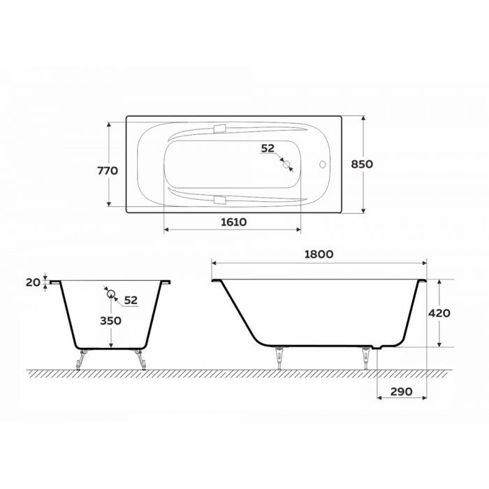 - тактильные ощущения:приятная комфортная поверхность ванны