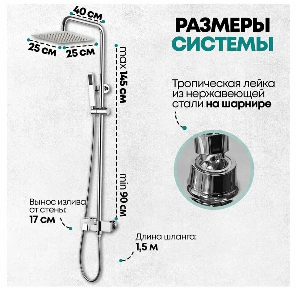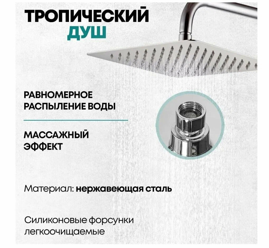 Смесители «Grocenberg» производятся из санитарной латуни с высоким содержанием меди (до 70%), при обработке и покрытии смесителей используются самые передовые технологии, двойное никель-хром гальваническое покрытие, порошковая окраска в камере высокого давления. Перед упаковкой и отправкой продукции, сантехника «Grocenberg» проходит контрольное тестирование на специальном оборудовании при наблюдении специалистов фабрики. Надёжный литой тяжёлый крепкий корпус выдерживает давление в 3 раза больше, чем давление в водопроводной системе и при правильной эксплуатации прослужит на много дольше гарантийного срока без поломок. Идеальные формы, эргономичный дизайн и плавный ход переключателей добавляет комфорт и удобство в использовании. Вес в коробке 6,2 кг Вес смесителя 5 кг Ширина излива 4,5 см (фиксированный) В комплект входит всё необходимое: Ручная лейка: ширина 3,5 см/длина 20 см Верхний душ: 25х25 см (квадрат) Штанга телескопическая: 90-145 см. Шланг: длина 1,5 м. Межевое расстояние 15 см Прокладки Эксцентрики Отражатели Стильное и яркое дополнение вашему интерьеру. Немецкое качество. Прямая продажа от завода-производителя бренда Grocenberg. Все товары бренда «Grocenberg» упакованы в крепкие коробки и проложены поролоном, это обеспечивает 100% гарантию того, что вы получите идеальный смеситель. Данный товар подойдет вам, если вы ищете смеситель для ванны и душа, душевой гарнитур, душевую систему, душевой комплект, душевую стойку, тропический душ со смесителем, душевую стойку со смесителем, стойку для душа, тропический душ комплект. Комплектация Смеситель, излив, штанга телескопическая, верхний тропический душ, рунная лейка, держатель для лейки, шланг для душа, эксцентрики, отражатели, прокладки, монтажный комплект.