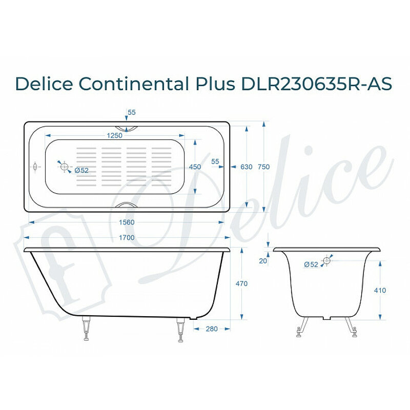 Сервис сравнения цен СкидкаГИД предлагает сравнить цены на товар «Чугунная ванна Delice Continental Plus Elite 170х75 с отверстиями под ручки без ножек DLR230635R»