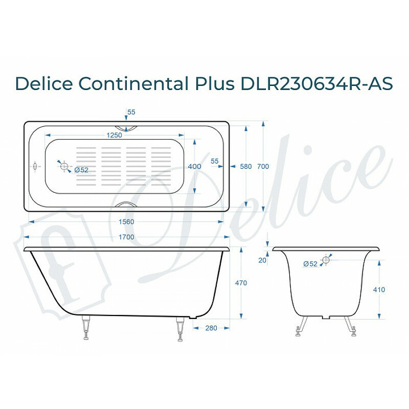 Сервис сравнения цен СкидкаГИД предлагает сравнить цены на товар «Чугунная ванна Delice Continental Plus Elite 170х70 с отверстиями под ручки и антискользящим покрытием без ножек DLR230634R-AS»