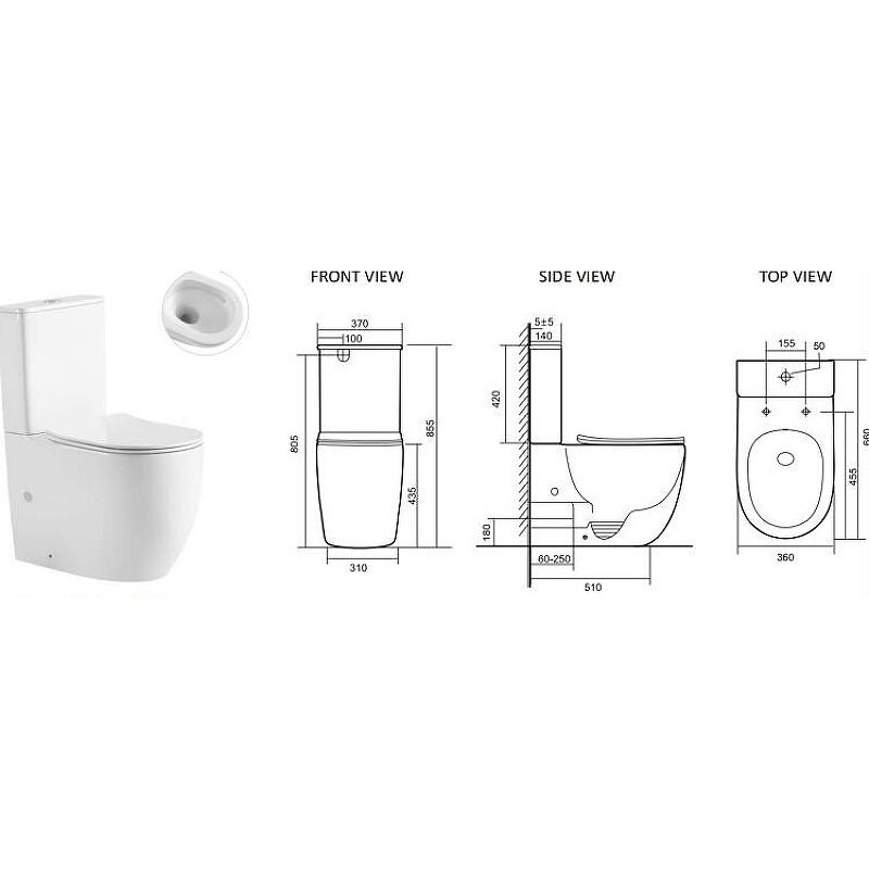 - Безободковая конструкция Rimless (обеспечивает высочайший уровень гигиены и удобство в уборке из-за отсутствия труднодоступных мест).